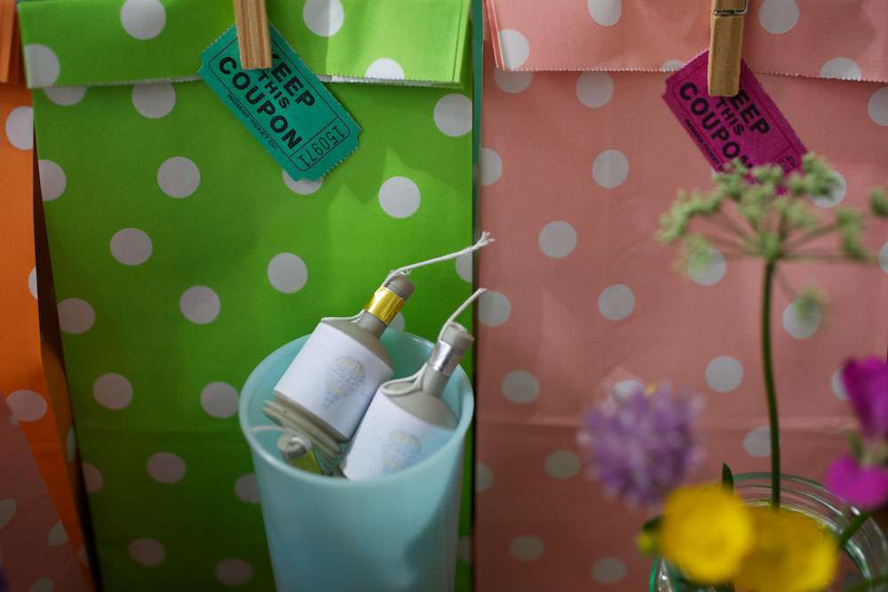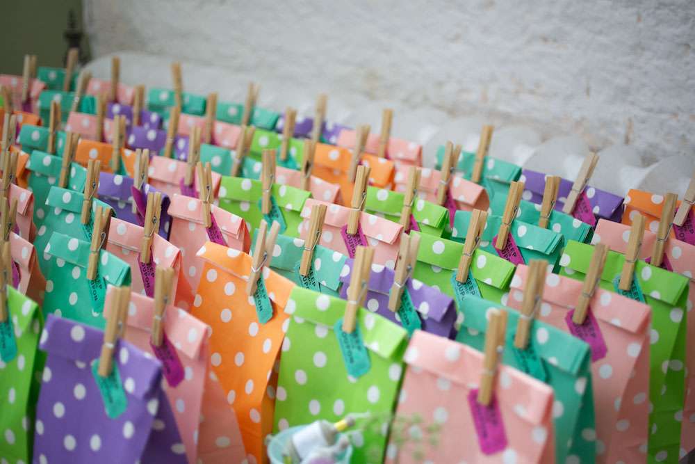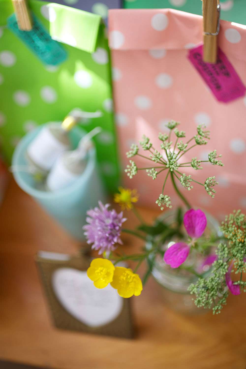 “We also made our favours, although because I am such a big fan of a party bag they turned into a whole collection of bits and bobs. The bags were filled with party poppers that we re-branded with our own little logo, matches which we decorated with our hot air balloon motif and a banner, as well as bubbles, rainbow drops, popping candy and temporary tattoos! Oh, and those little red fortune telling fish you get in crackers, simply because they’re fun and romantic, and I love them.”