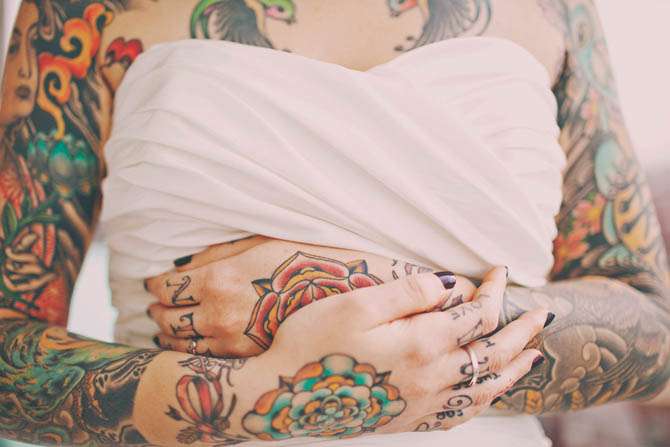 A LOT has changed since then (thank goodness) and no longer are we bombarded with the notion that you have to hide your tats when you walk down the aisle… well not as often anyway.