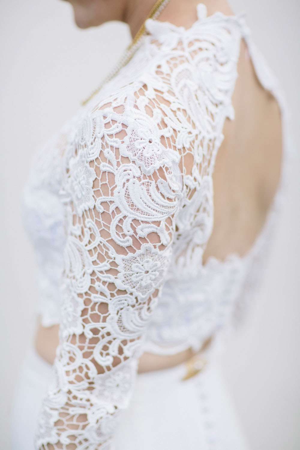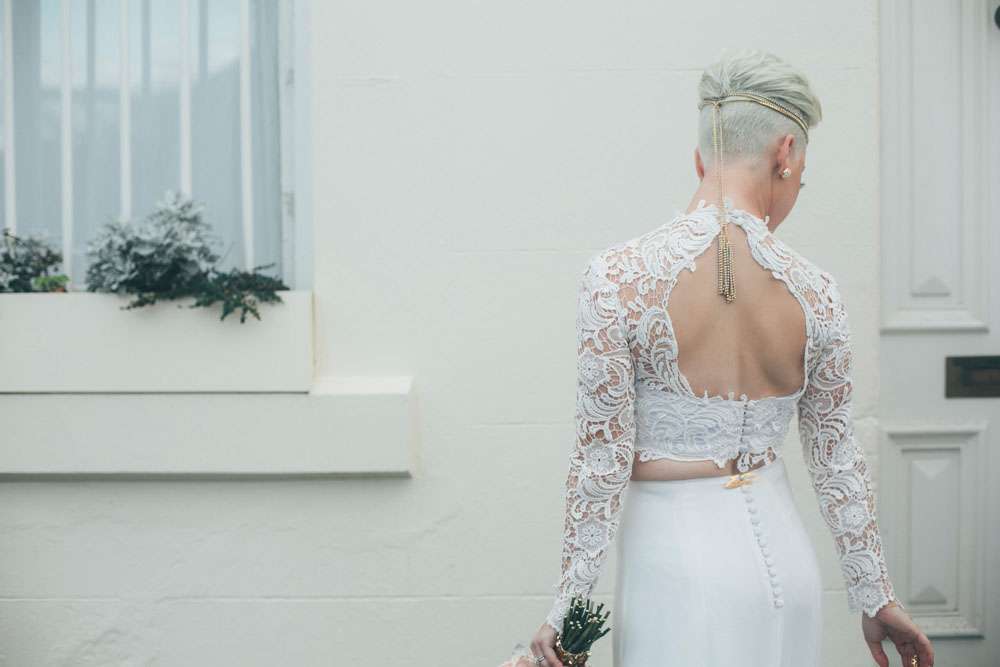 Swan wore an INCREDIBLE two-piece wedding ‘dress’, a skirt and lace top combo made by an Italian seamstress. Her headpiece was by Veiled Beauty and her jewellery from Atelier of Love.