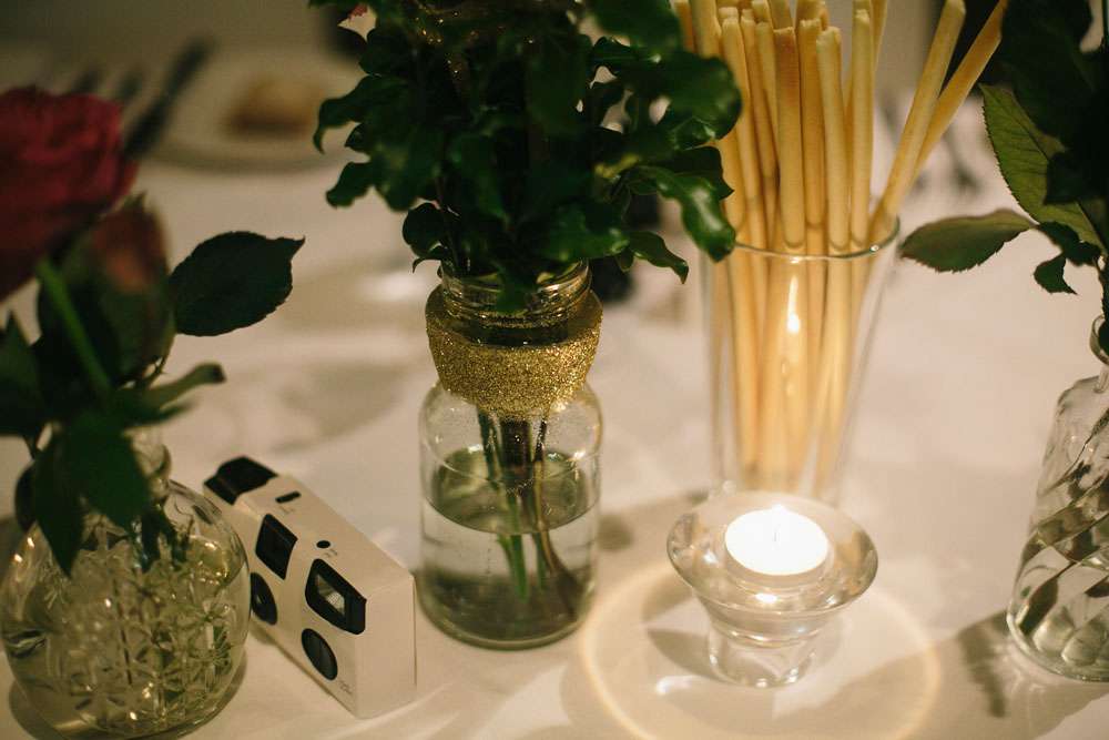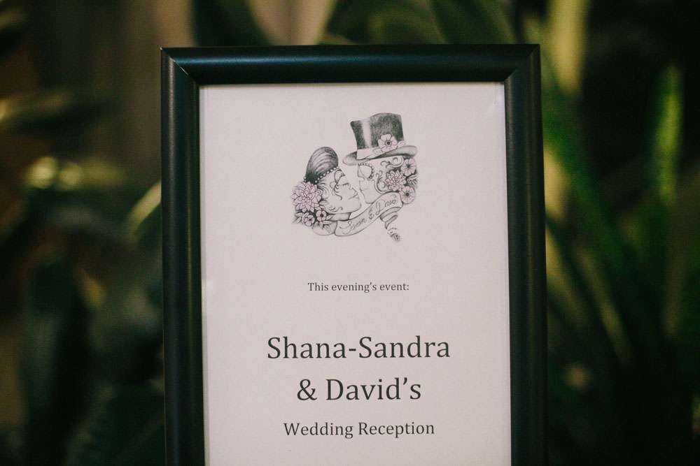 “Our wedding theme was ‘us’… with a hint of glitter!” began the bride. “I also (accidentally!) fell pregnant 9 weeks before the wedding…whoops!!! In true Rock n Roll style I had to have my dress altered to fit my new baby body the night before the wedding!”