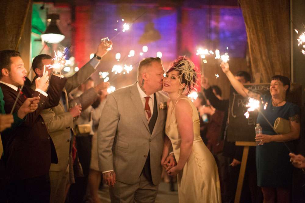 “The best thing about our wedding was how it really reflected our quirky personalities and offbeat sense of humor. The part we enjoyed the most, however, was seeing all of our family and friends from different aspects of our lives (and different parts of the world) in one room, smiling and genuinely enjoying themselves. Not to mention making our grand entrance down a spiral staircase to Metallica’s ‘Am I Evil’ with fog and lasers. That was also a highlight.”