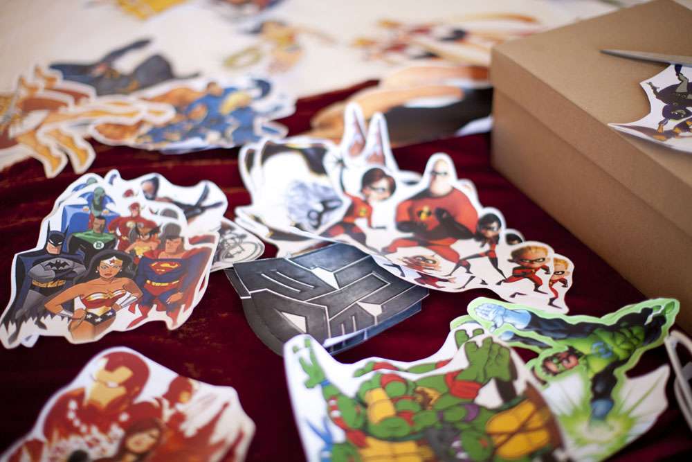 “We love theme parties and costumes, so we pretty quickly decided on a superhero-themed wedding”, she continued. “The theme was also a way for us to pay tribute to how amazing our guests are. We set the tone by sending out postcard invitations designed like a comic book cover. At the wedding, we named tables after some of our favorite superheroes, from She-Hulk to Sailor Moon. Our party favors were sunglasses with the inscription ‘You’re our hero!'”