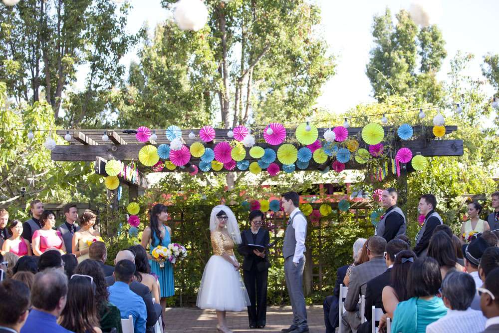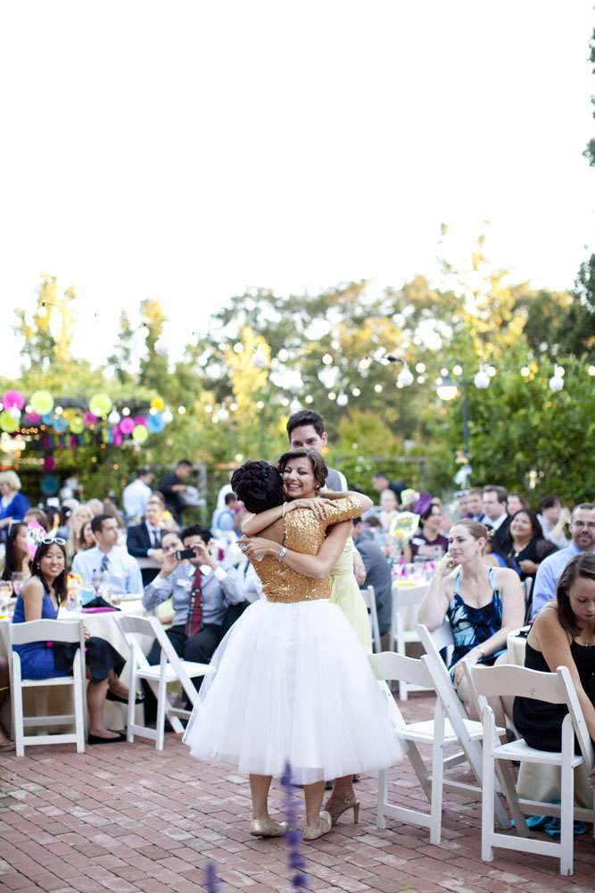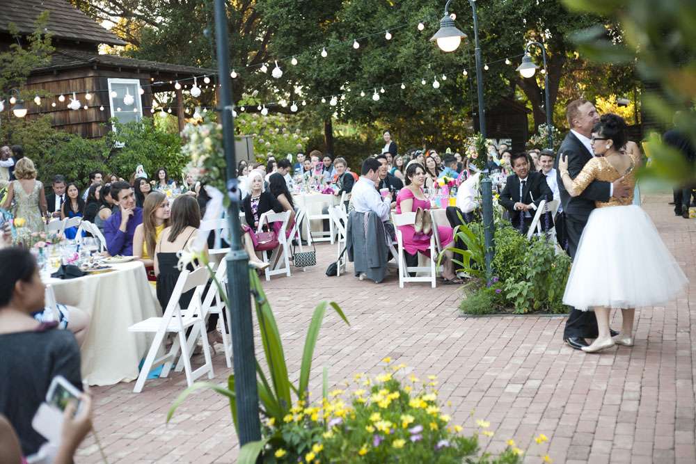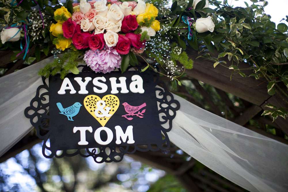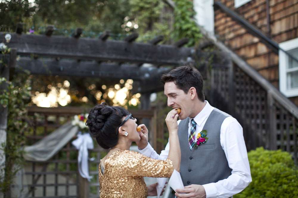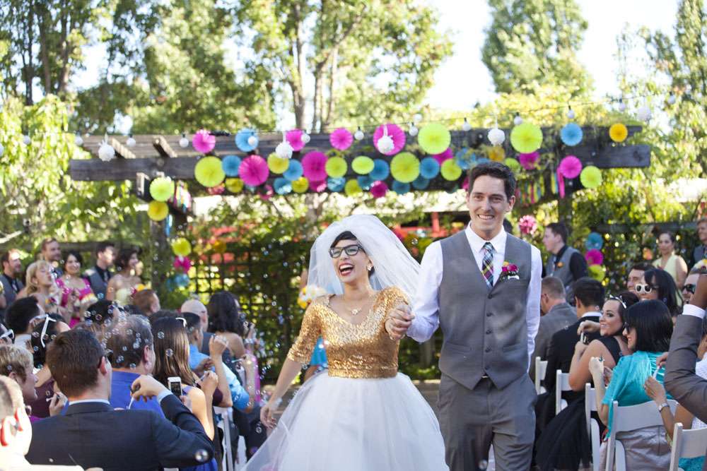 “We met through mutual friends at a Chromeo show in San Francisco, where I think we both impressed each other by dancing with ridiculous abandon”, began the bride, Aysha. “About a year later, had our first kiss on New Year’s Eve at a Lake Tahoe music festival. We had our wedding in the San Francisco Bay Area on a gorgeous Friday the 13th, which was also the night of a full moon. We got engaged on a 13th, so it’s a very auspicious day as far as we’re concerned.”