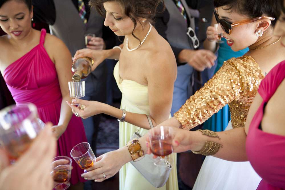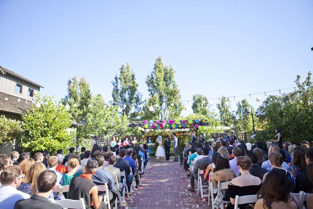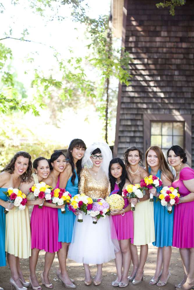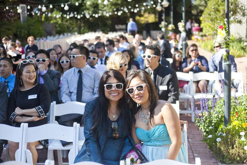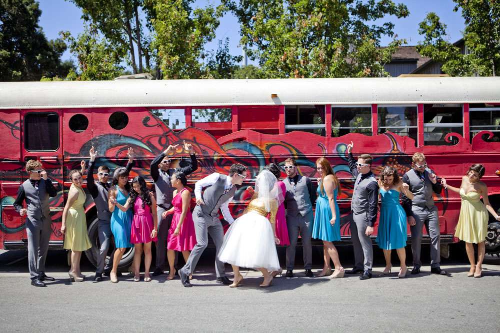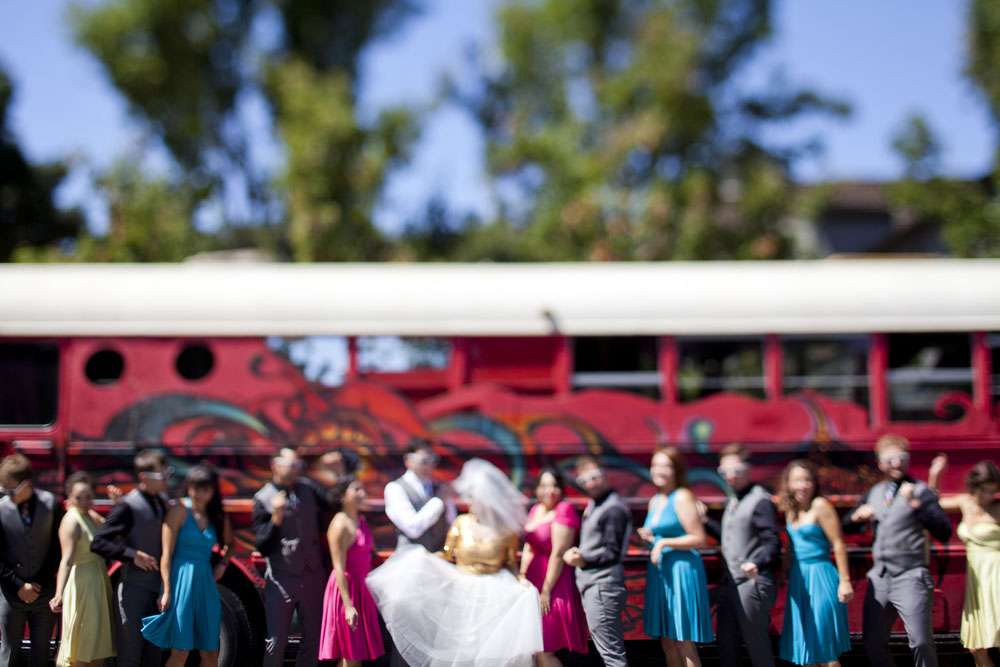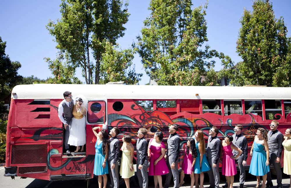 “We met through mutual friends at a Chromeo show in San Francisco, where I think we both impressed each other by dancing with ridiculous abandon”, began the bride, Aysha. “About a year later, had our first kiss on New Year’s Eve at a Lake Tahoe music festival. We had our wedding in the San Francisco Bay Area on a gorgeous Friday the 13th, which was also the night of a full moon. We got engaged on a 13th, so it’s a very auspicious day as far as we’re concerned.”