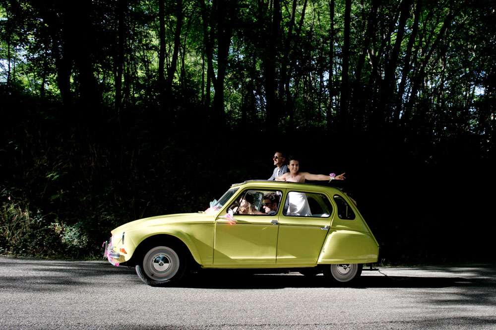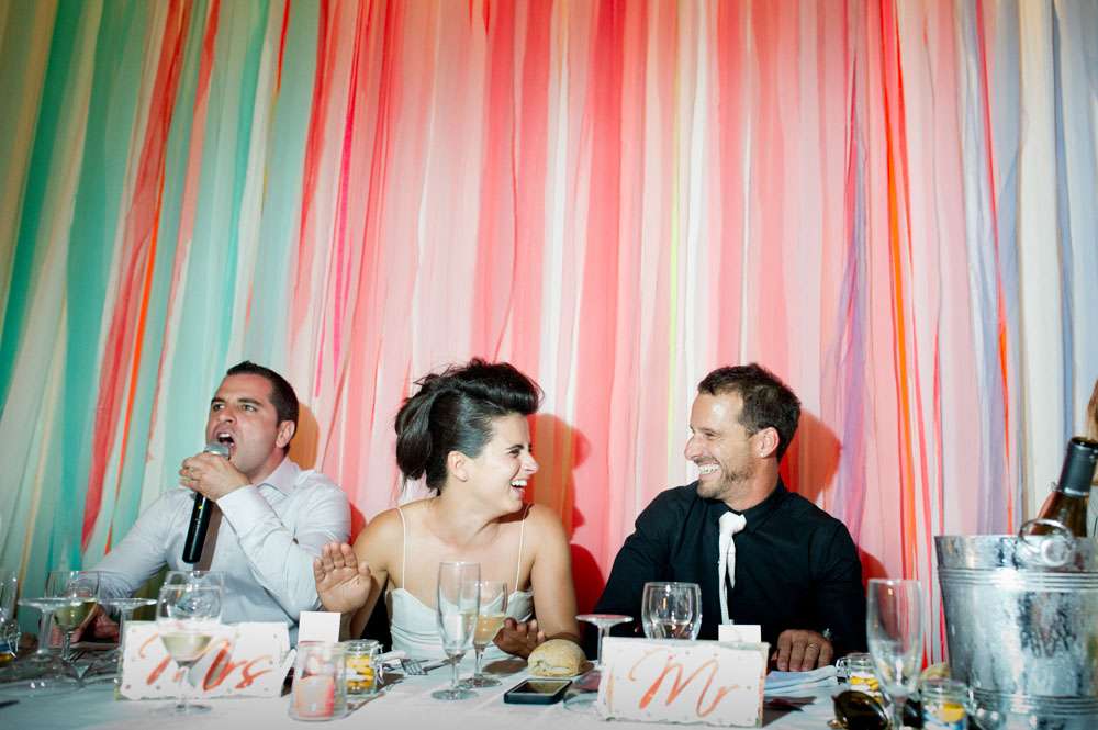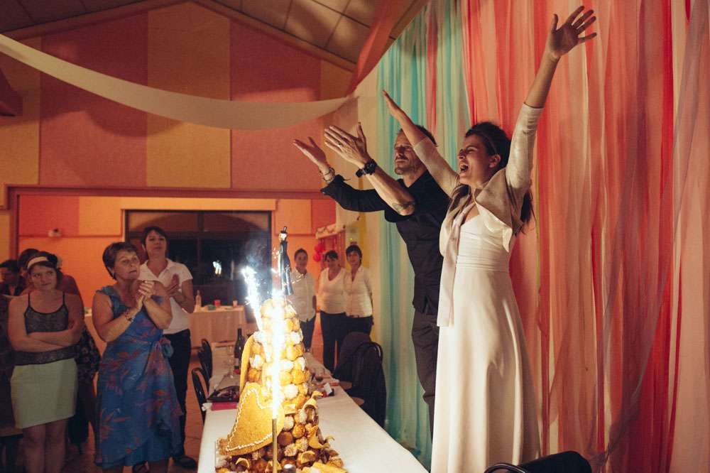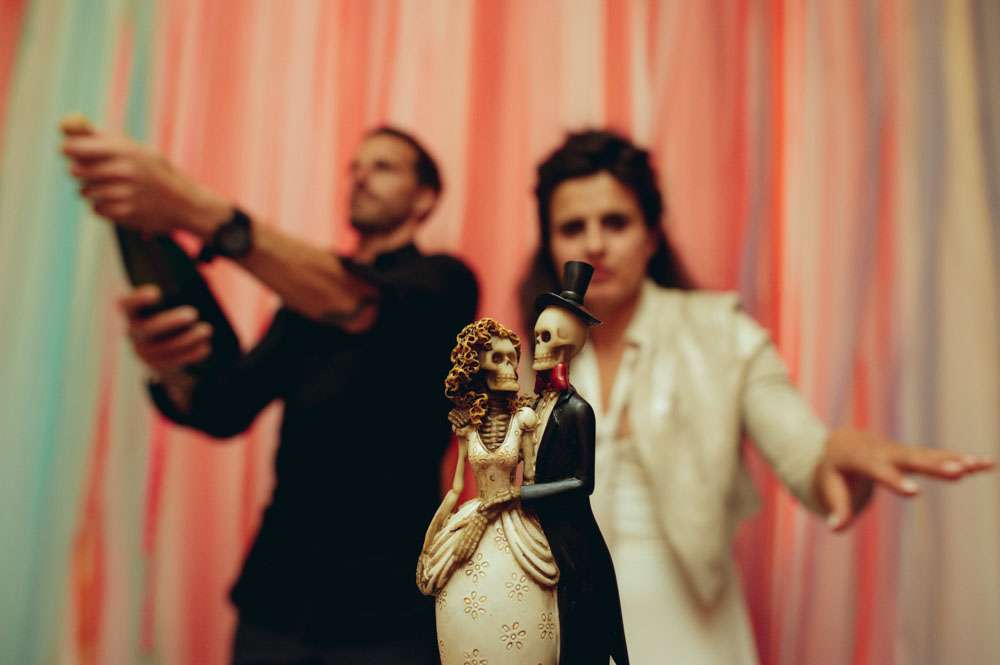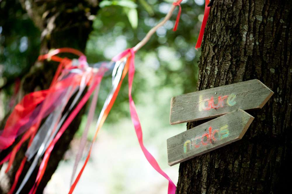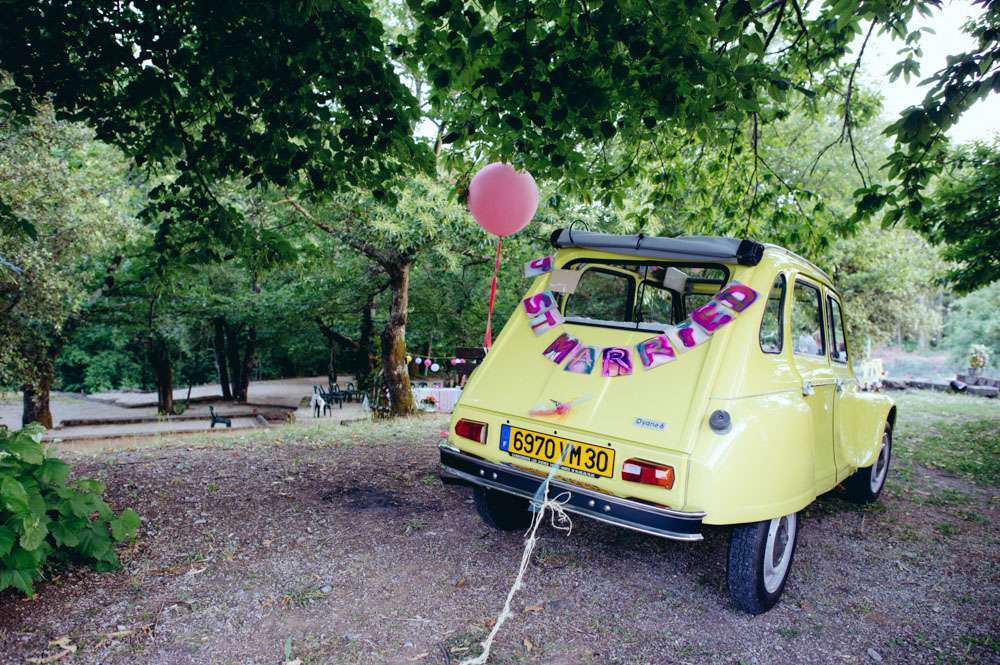 Lor and Nico were married in France. An artist and a musician, they were always going to have a creative wedding. The bride handled most of the décor herself. “As an artist, Lor loves colour, and since this is part of her job she was keen to take care of the décor herself”. began the groom. “She did the invitations and the entire venue set up. I play and sing in a Rock n Roll band so we also wanted an element of Rock n Roll in the day.”
