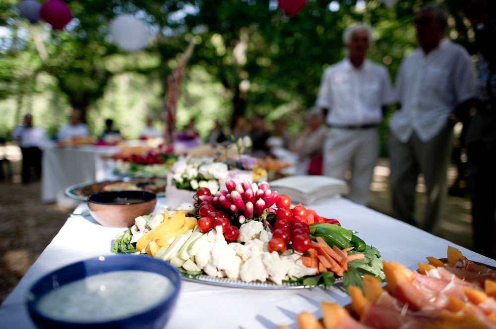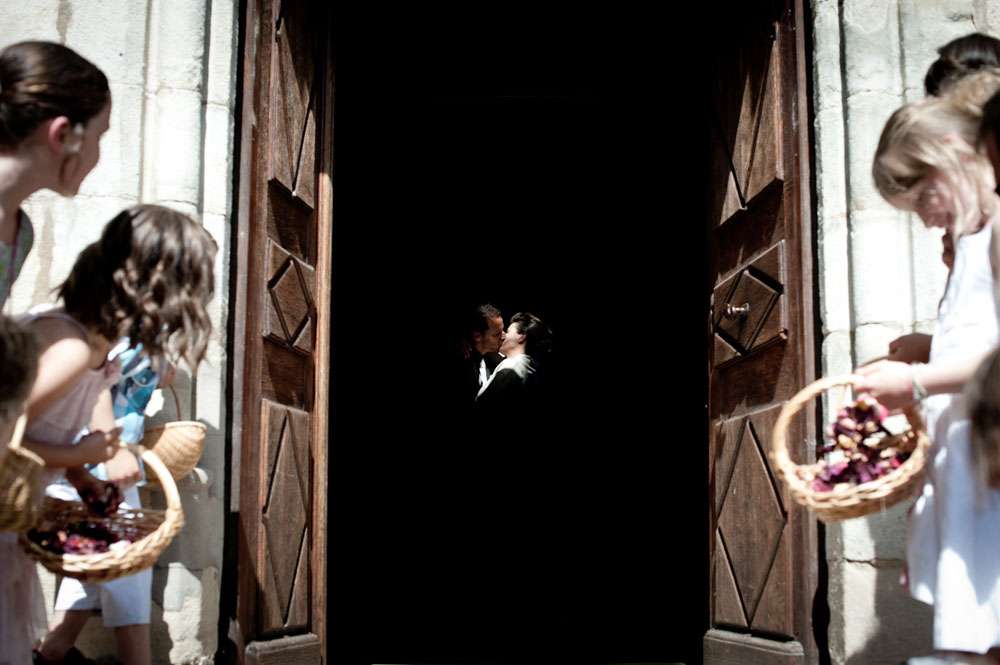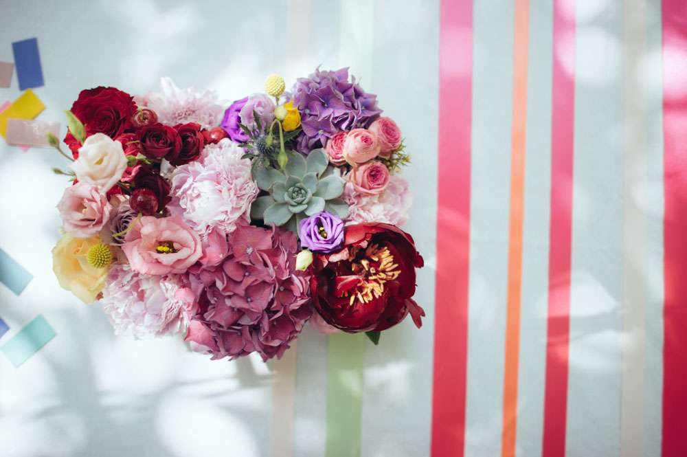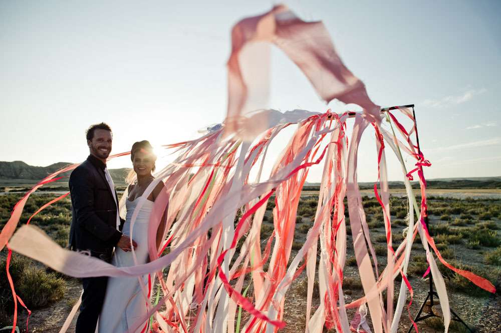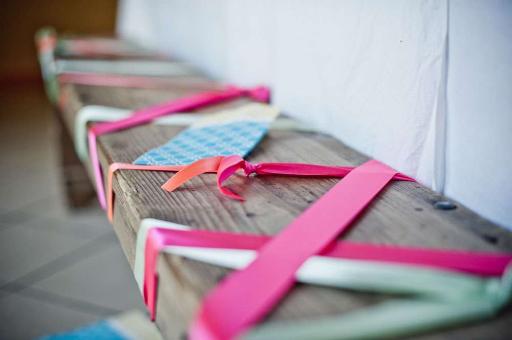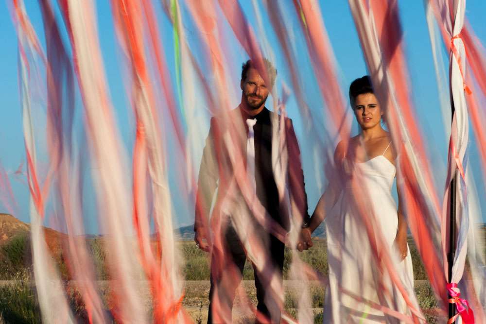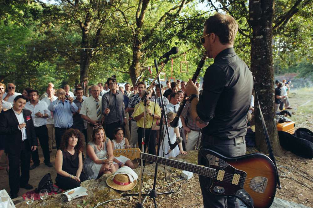 Lor and Nico were married in France. An artist and a musician, they were always going to have a creative wedding. The bride handled most of the décor herself. “As an artist, Lor loves colour, and since this is part of her job she was keen to take care of the décor herself”. began the groom. “She did the invitations and the entire venue set up. I play and sing in a Rock n Roll band so we also wanted an element of Rock n Roll in the day.”