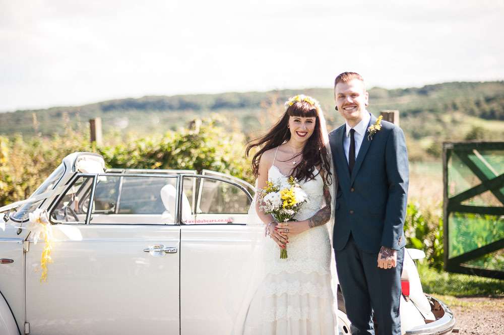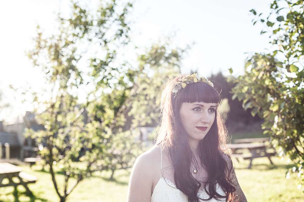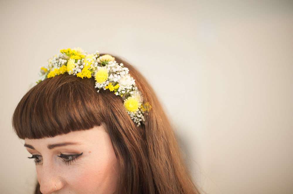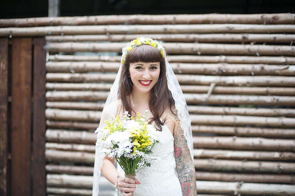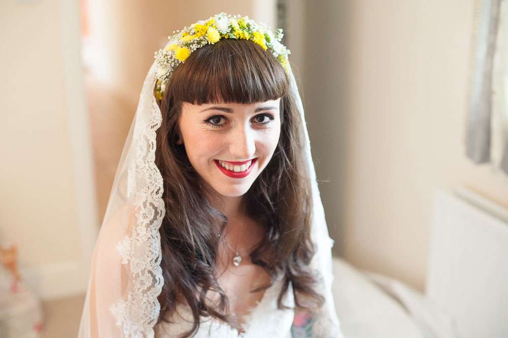 The bride wore a Cymbeline dress which she wore with a yellow flower crown (made from real flowers). Her bridesmaids were in floral dresses from Topshop.