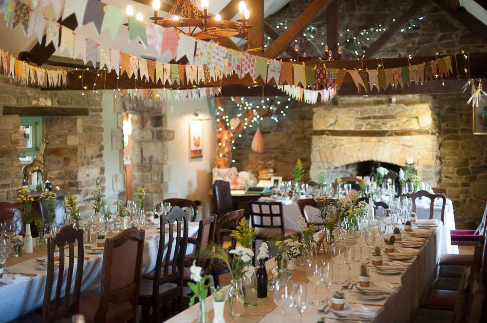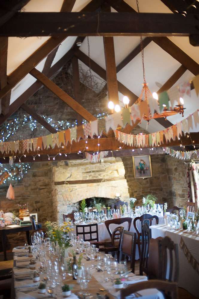 “We also knew we wanted a small, relaxed reception venue somewhere in the countryside so we decided to book the beautiful old pub The Black Horse in Beamish, County Durham. Our reception was held in the oldest part of the pub with original fireplaces and beams, and had a roof terrace that overlooked the beautiful countryside. This was the perfect back drop for our handmade wedding.”