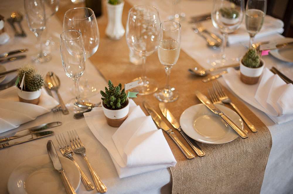 The couple’s wedding budget was just £7000, way below the national average, but they were able to pull of this beautiful wedding by doing as much as they could themselves. “We did lots of DIY, in fact the majority of the wedding was handmade in some way or another”, Lisa said. “I designed the invitations and Damien made all of the envelopes from scrapbook papers. We also made our bunting from this too. Myself and my bridesmaids had lots of DIY days where we made tassel garlands, flags for our paper straws and our name cards with flags that we placed in little cacti pots. Damien also dip painted all 42 cacti pots gold as well as hand lettered some chalkboards for our venues. Damien’s dad built us two amazing wooden signs, one for our ceremony and one for our reception.”