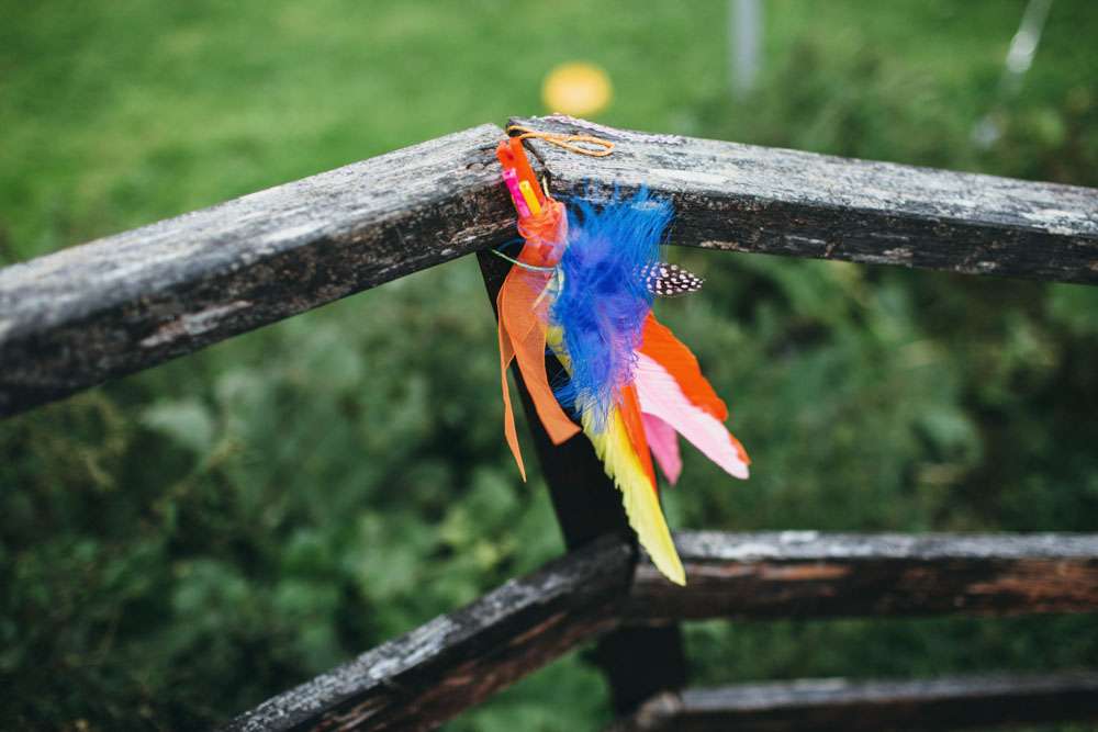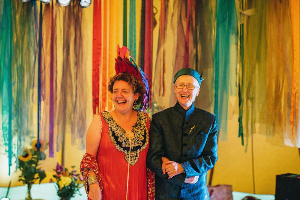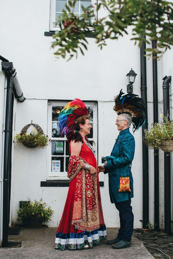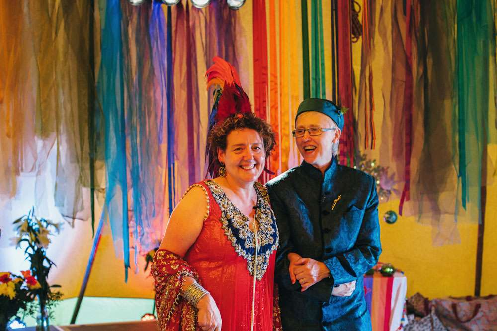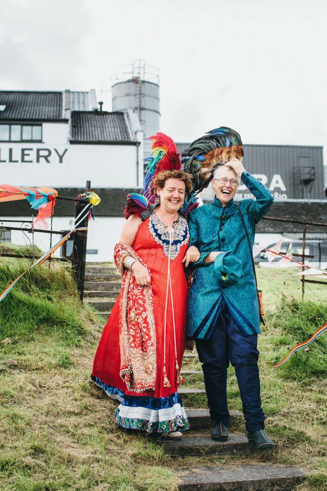 The girls looked beautifully colourful for their special day, and both wore two amazing outfits each! “We both wore hand made feather mohawks (one rainbow, one peacock) as a symbol of our pride in and celebration of the lesbian, gay, queer, intersex alliance rainbow, and in memory of a recently deceased friend (Gill) who always wore rainbow clothes”, they continued. “They also signified the anti apartheid rainbow alliance, and other similar progressive bridge building movements, which we wanted to pay homage too due to their triumph of hope and love over hate.”