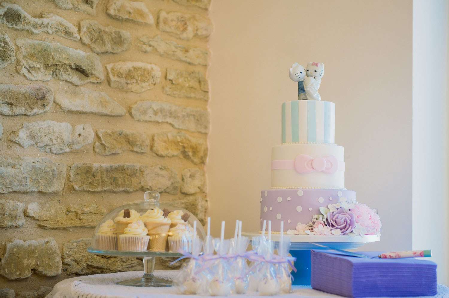 “Our wedding was a mix of eclectic interests. I was really passionate about the location and wanted to create a rustic, rural setting that complimented the stunning converted barns and rose garden which we got married in. I also used my love of Hello Kitty and Beatrix Potter wherever I could.”