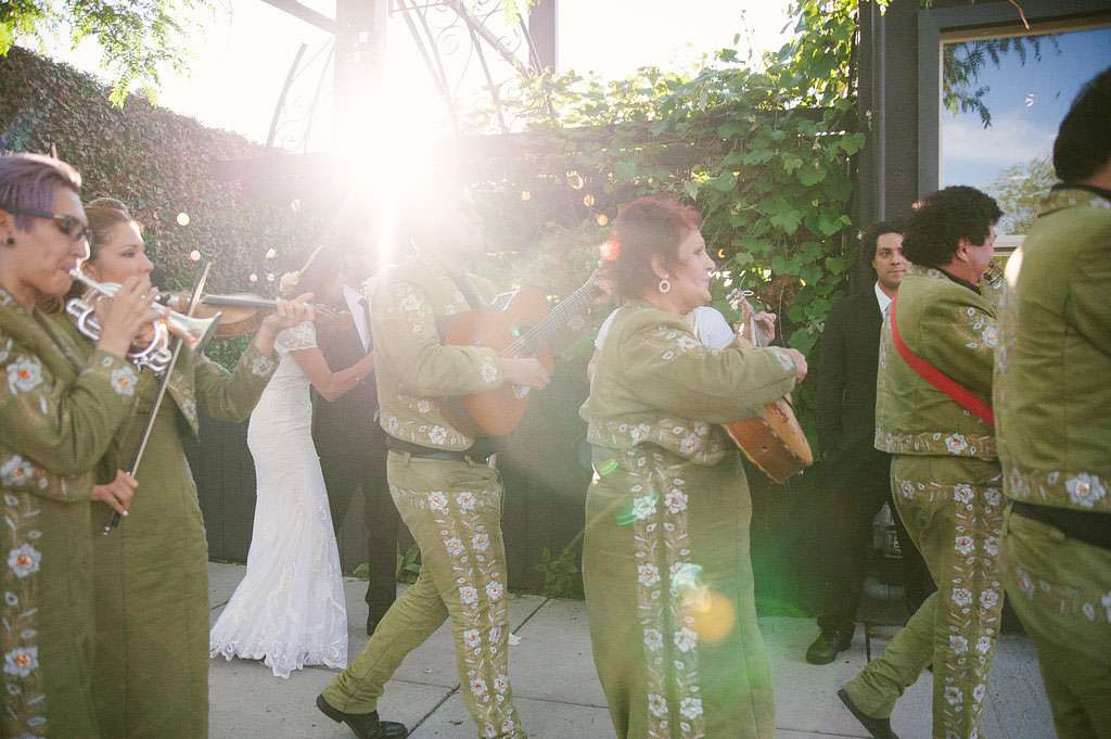 “One of our favorite things on the day was after the ceremony was over, during cocktail hour. Halfway through, a six piece Mariachi Band rounded the corner and played music over the patio. We opened the gates and the band led the march across the street to our reception at the winery. Cars were stopped in all directions as 80 people and a fully dressed Mariachi paraded down the street!”