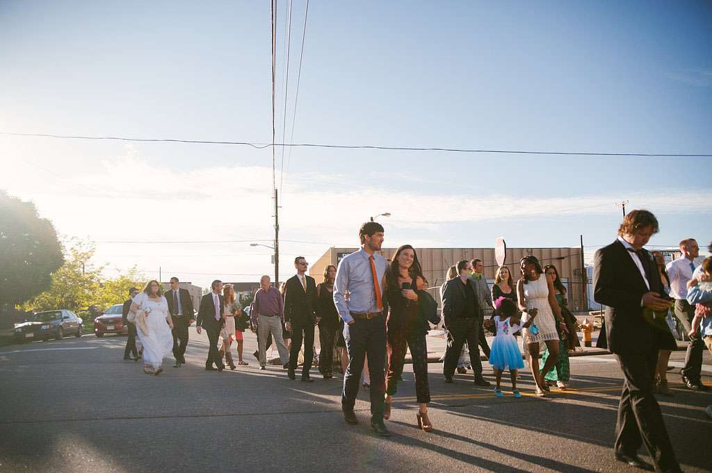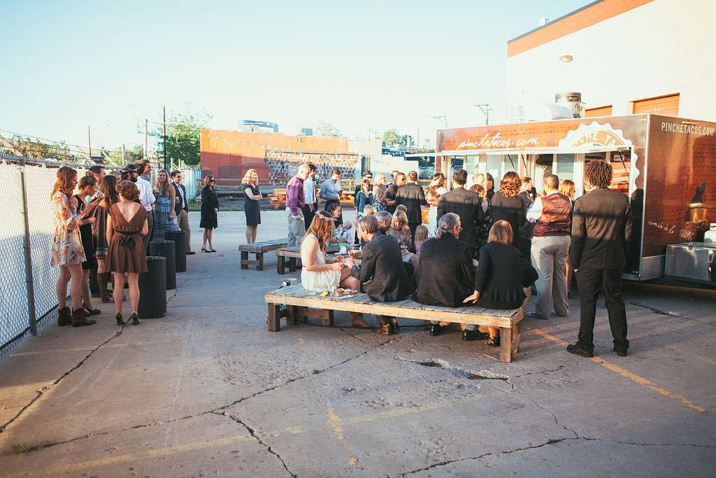 Laid back couple Tina and Rob wanted a wedding that celebrated their love of Denver. Instead of doing anything traditional, they decided to plan their wedding as if it was their perfect day in the city. Their ceremony was held in the garden of The Populist and their reception at Infinite Monkey Theorem Wine Lab.