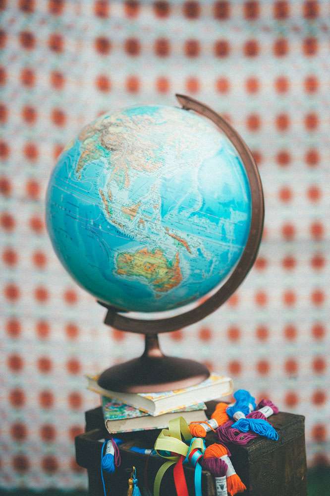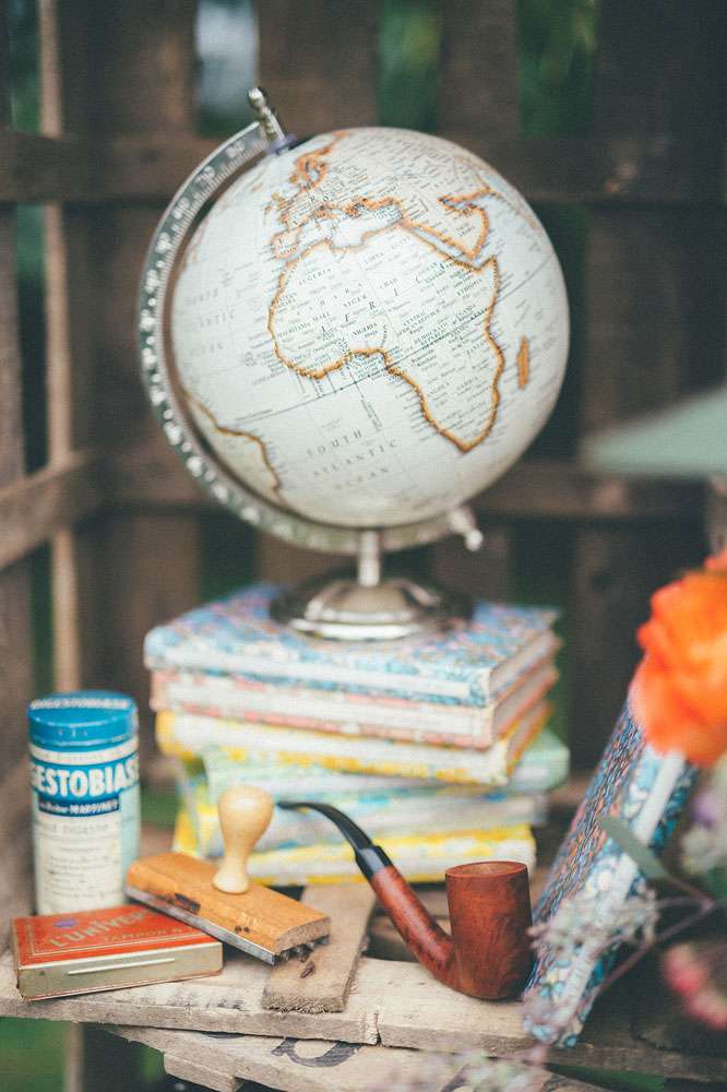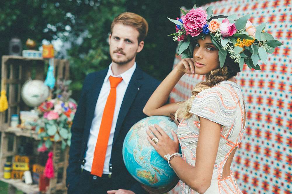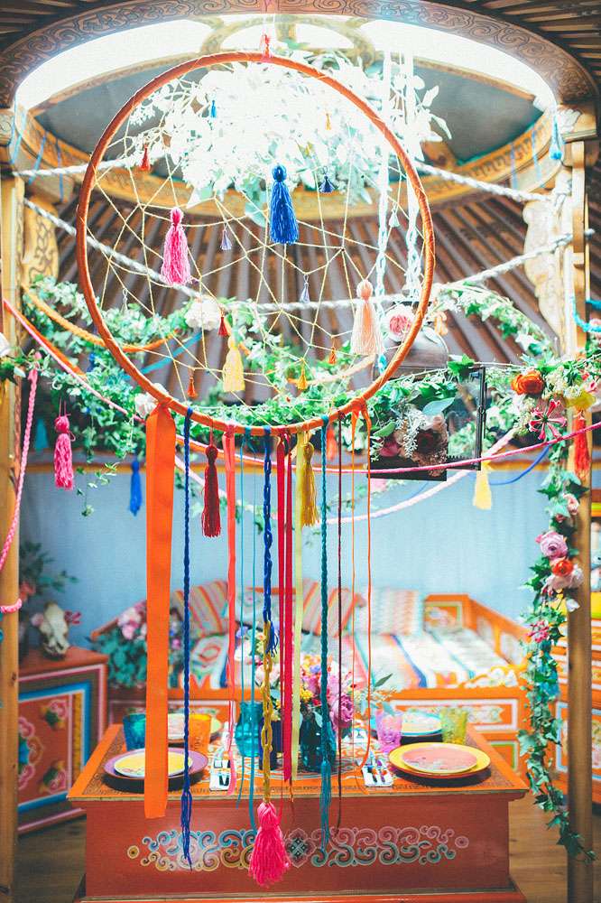 The bride’s dress is actually from Miss Selfridge, vintage globes can be picked up in second-hand stores and boot fairs everywhere, and even the giant dream catcher could be made with some feathers, rope and a big hoola hoop. Brilliant.
