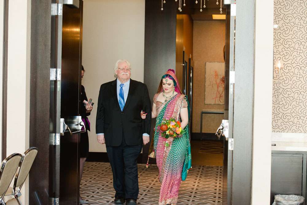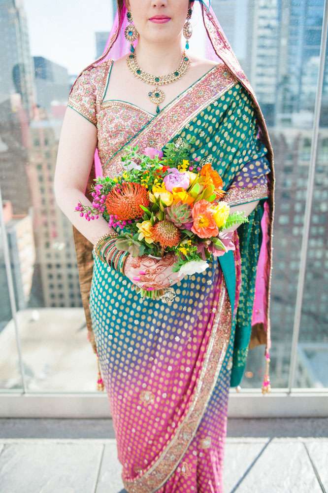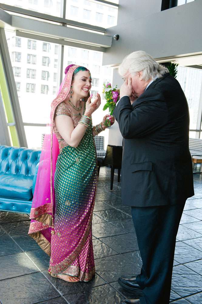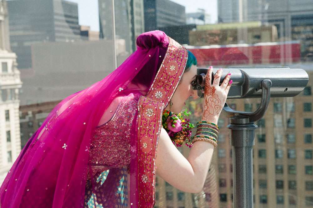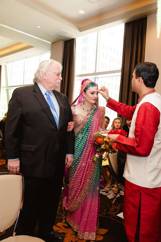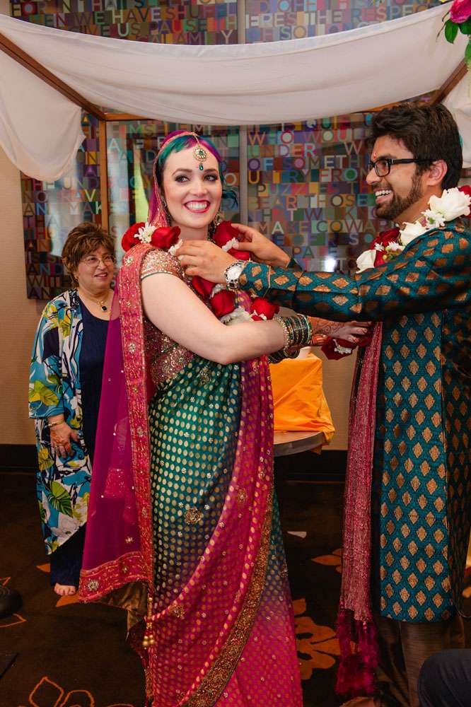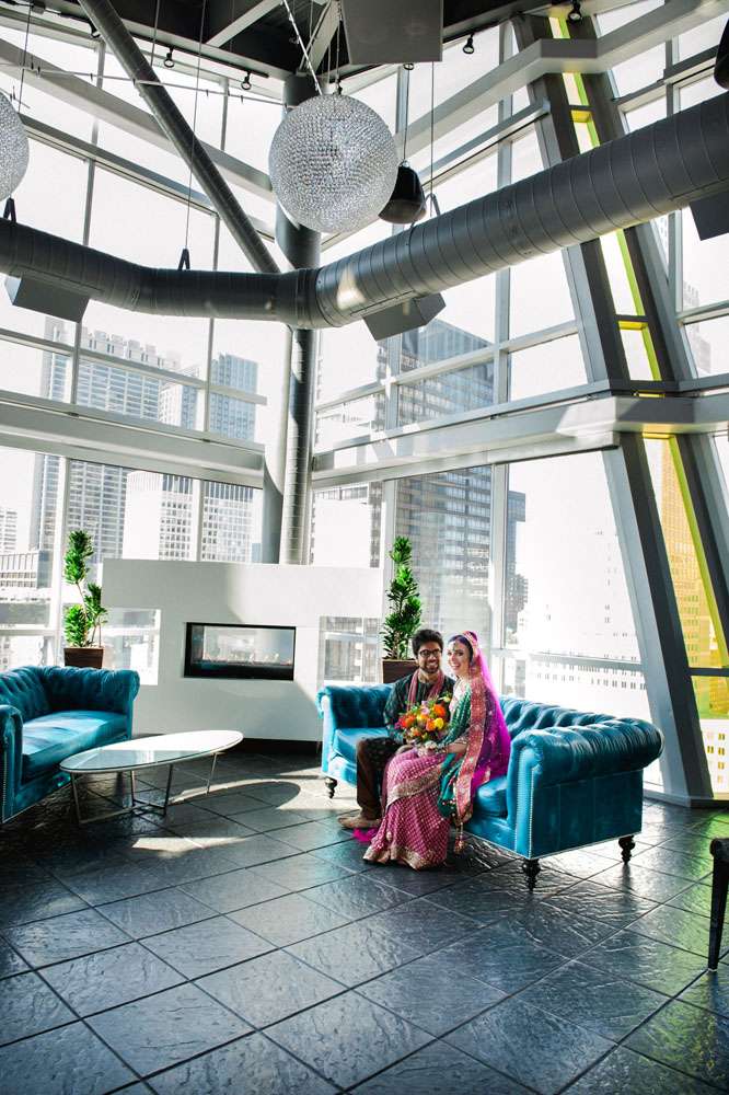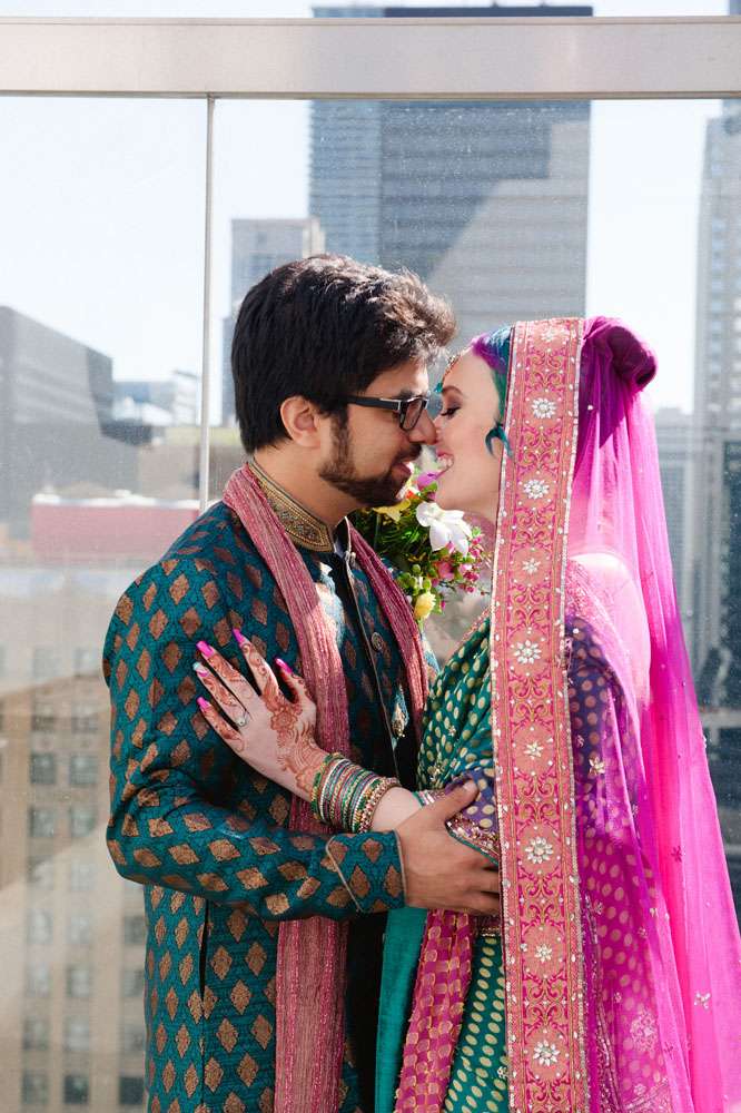 Talia and Indra wanted to reflect both their backgrounds in their wedding, Jewish and Hindu. They were married at Wit Hotel in Chicago and had a ceremony with both Hindu and Jewish elements.