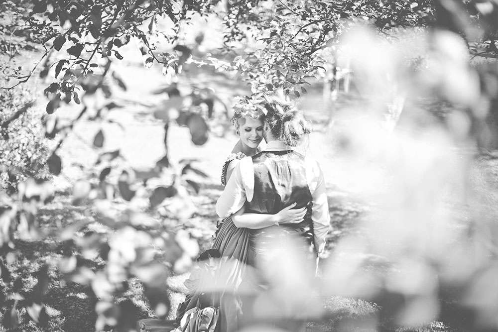 As soon as I saw just one photo of Ina‘s incredible handmade Moomin Valley (!!) wedding dress, I knew this was a wedding that I HAD to feature. There really are no words! The couple were married in Risør, a small town in the south of Norway. The day took place at the groom’s parent’s home, a yellow house on the countryside, with a big garden full of fruit trees.