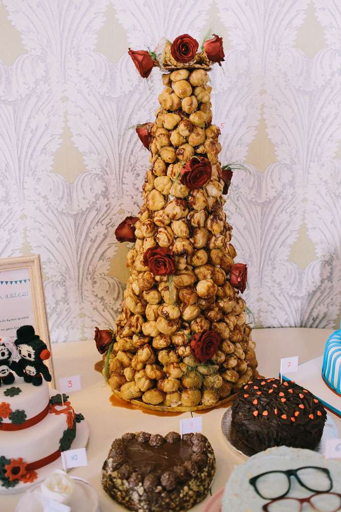 “We were really lucky to have amazingly talented friends and family who helped us with the wedding. My friend Lol created all our stationery and loads of little touches on the day from our table names to signs around the room. Tom’s family made all the bunting and my dad made the big light up L and T. On top of that we had a bake off and there were some exceptional bakes brought along, especially the huge croquembouche made by my cousins. It was built around an actual traffic cone!”