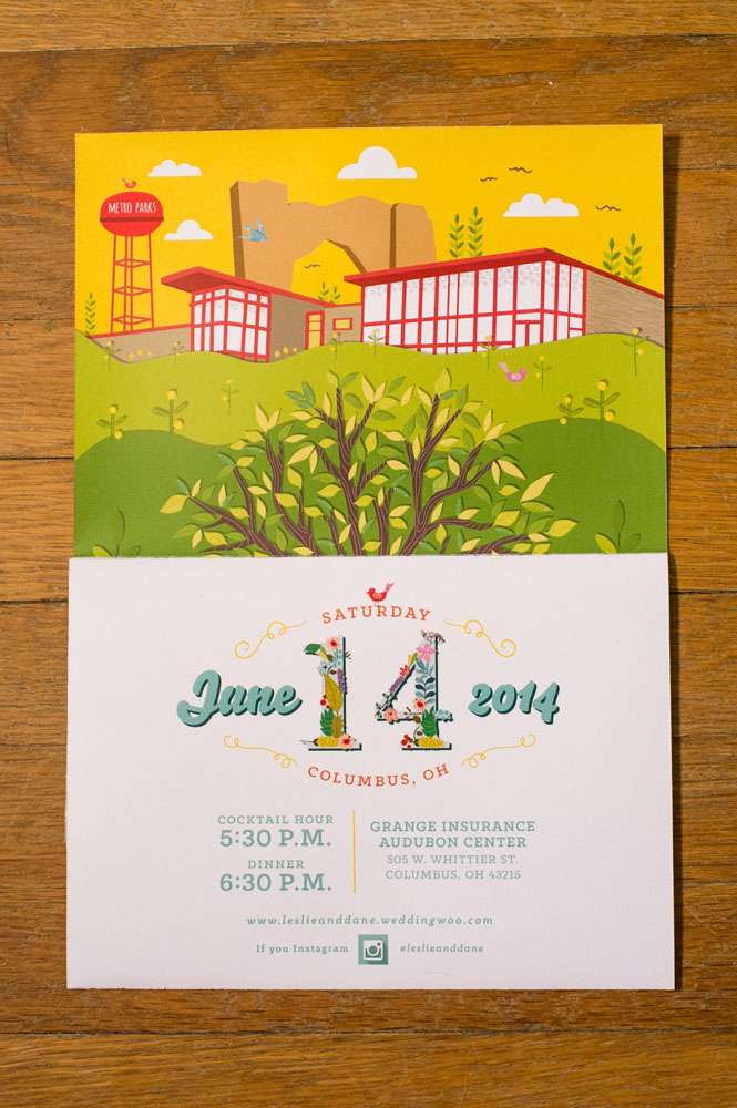 “We are both artists and have very eclectic styles”, began the bride, “so we found things that we liked and put them together. I think our ceremony backdrop really made our wedding. We hand made everything from the Ohio shaped menu cards, escort cards, cake topper, table numbers, signage, programs, save the dates, invitations, ceremony backdrop, and menu cards. We had fun making everything and our guests raved over it, which made it feel different to us. We also wrote our own vows and heading so hearing the vows Dane wrote for me the first time was the best bit of the day for me.”.