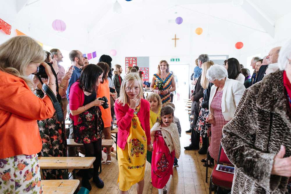 The wedding took place by the sea in Anglesey in May. “We didn’t have a wedding theme as such”, began Anna, “we just wanted it to be colourful, relaxed, fun, full of laughs, unpretentious, family-focused and very much DIY and personalised to us and the people and things we love. We wanted everyone there to feel special and comfortable and get involved as much as they wanted to. Lots of weddings focus just on the bride and groom, but to us it was also very much a day about our wonderful group of friends and family. We’re both incredibly close to them and it was really important to us to celebrate the fact that we weren’t just coming together as a couple, but also as part of a precious larger community.”