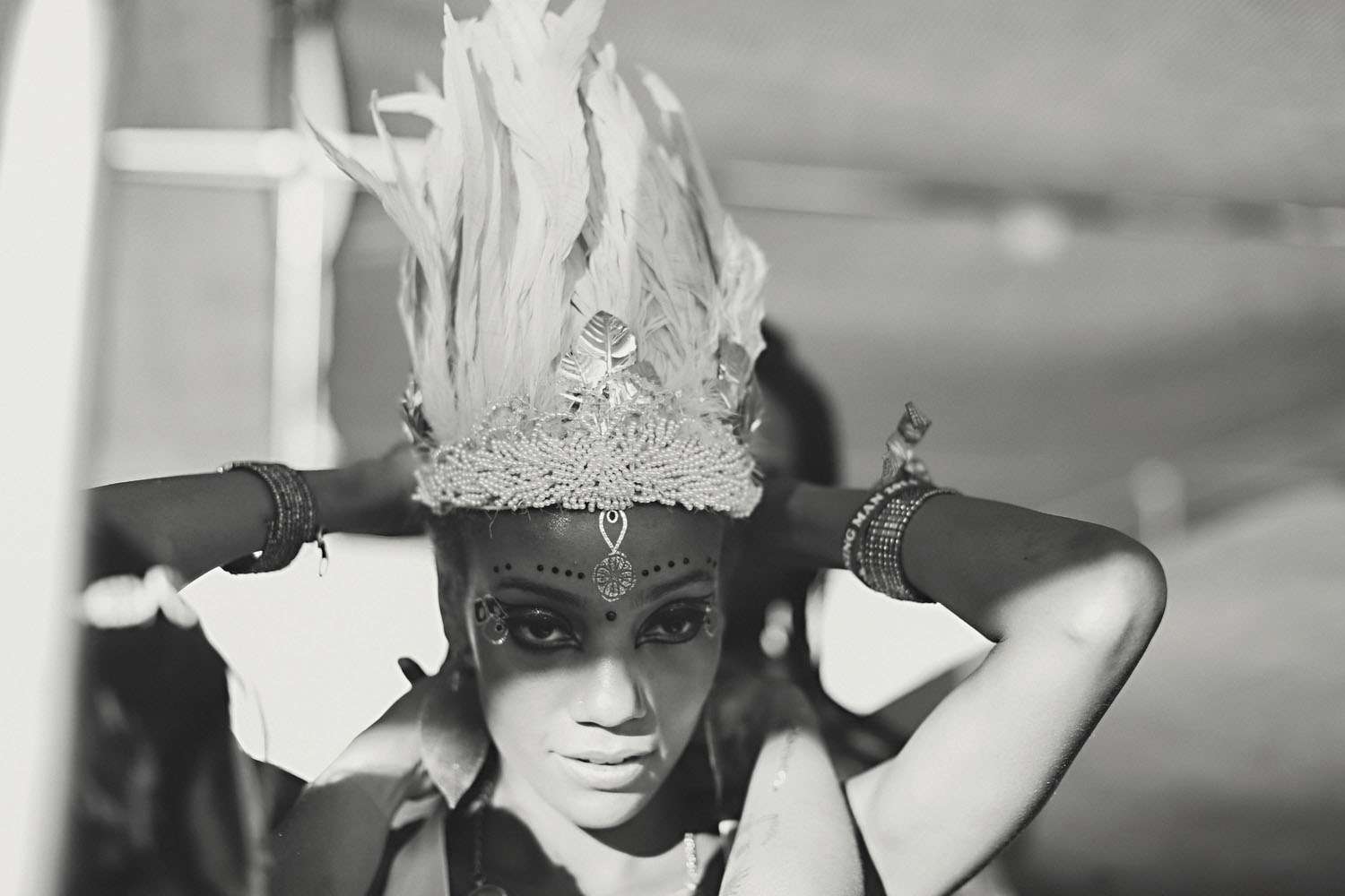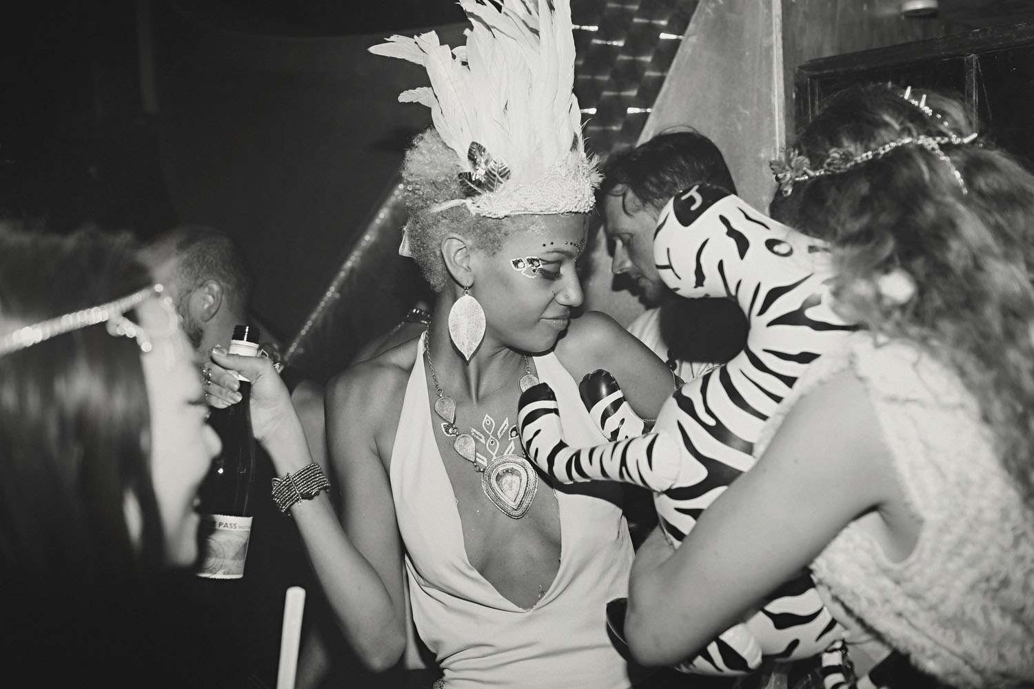 Jasmine’s dress was custom made by Lucky Dress Shop, her iridescent platform sneakers were by Urban Outfitters and her headdress was homemade.