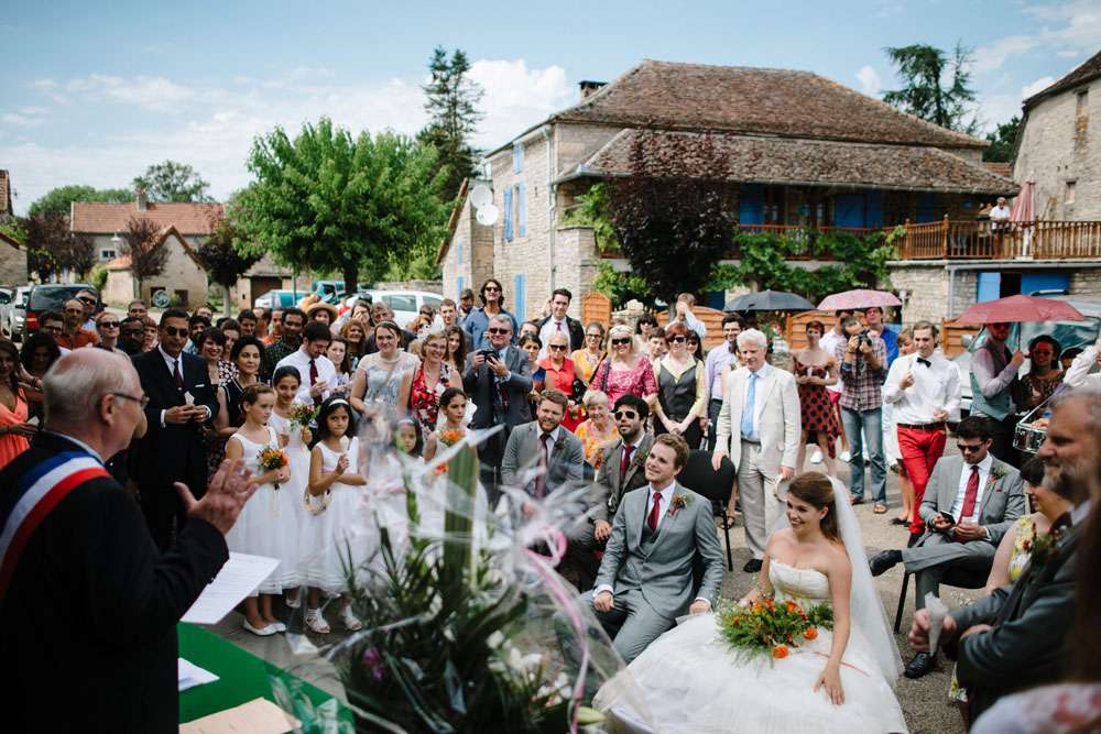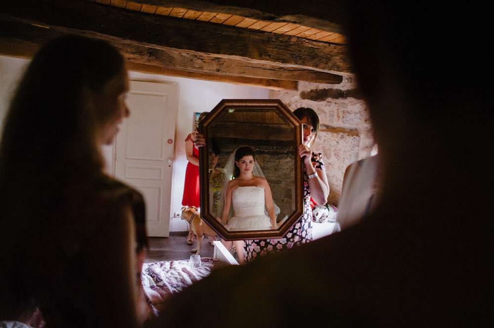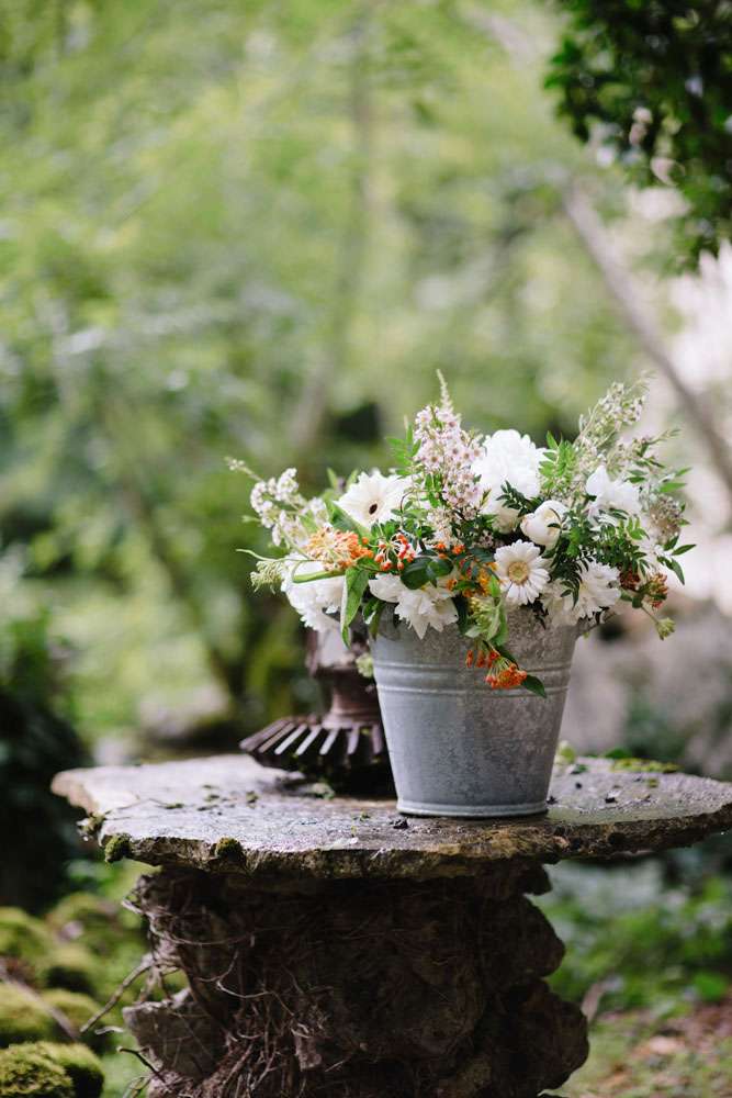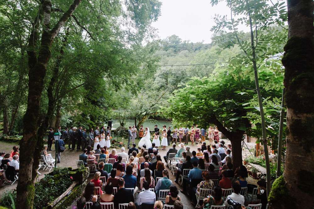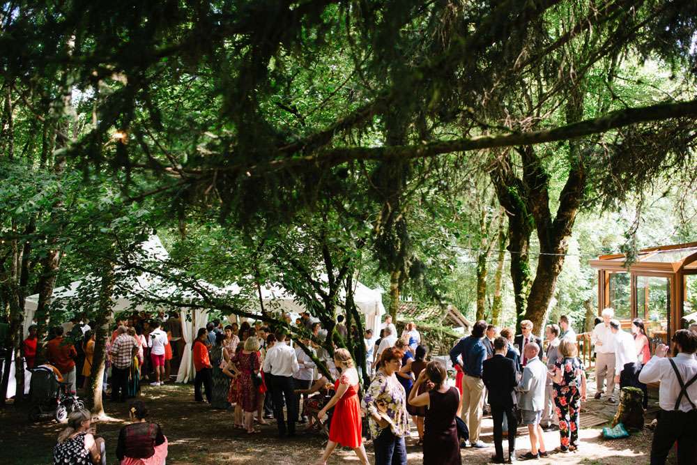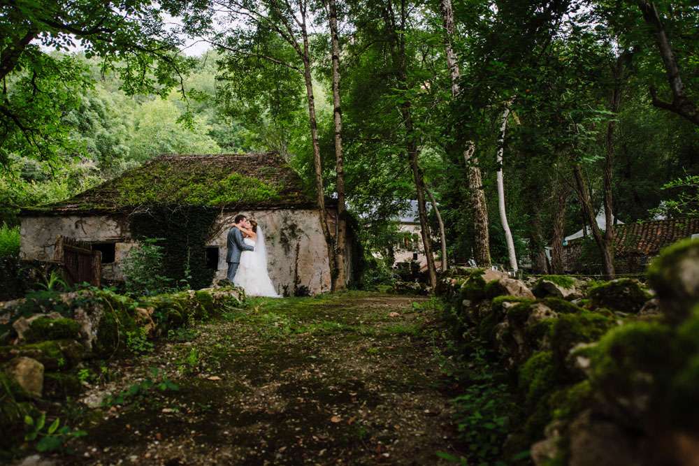 The wedding was held in the family home, a watermill in Loze, Tarn et Garonne, South West France. “We are both very political, and very much on the left”. wrote the bride. “We would also both identify as radical feminists so we really wanted to reclaim the concept of a wedding, out of its problematic patriarchal roots and into something that was meaningful to us. We only followed tradition when it made sense to us. For example, my godfather had really insisted to walk me to the altar (both my parents having passed away), but I had to vehemently refuse, as the symbolism of the bride being taken to her husband by a father figure is rather problematic to us. It was important to me to walk alone, yet surrounded by my chosen family: my bridesmaids and bridesmen.”
