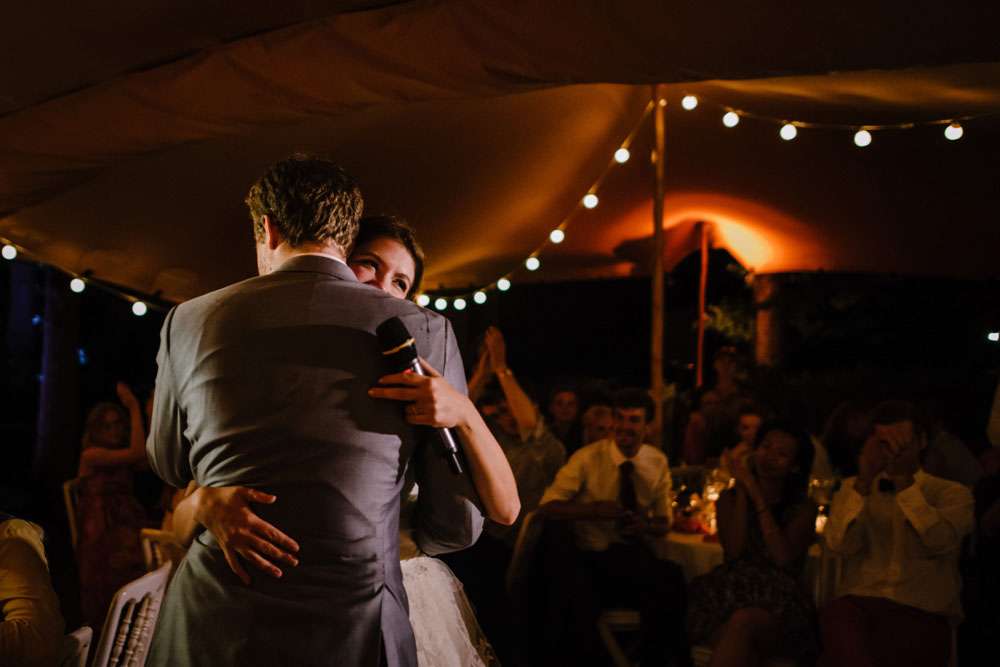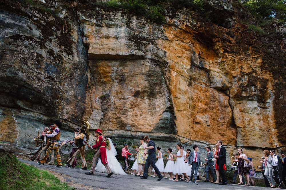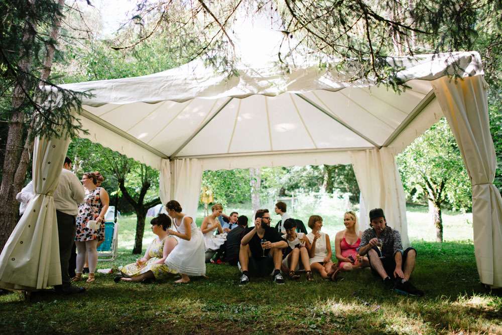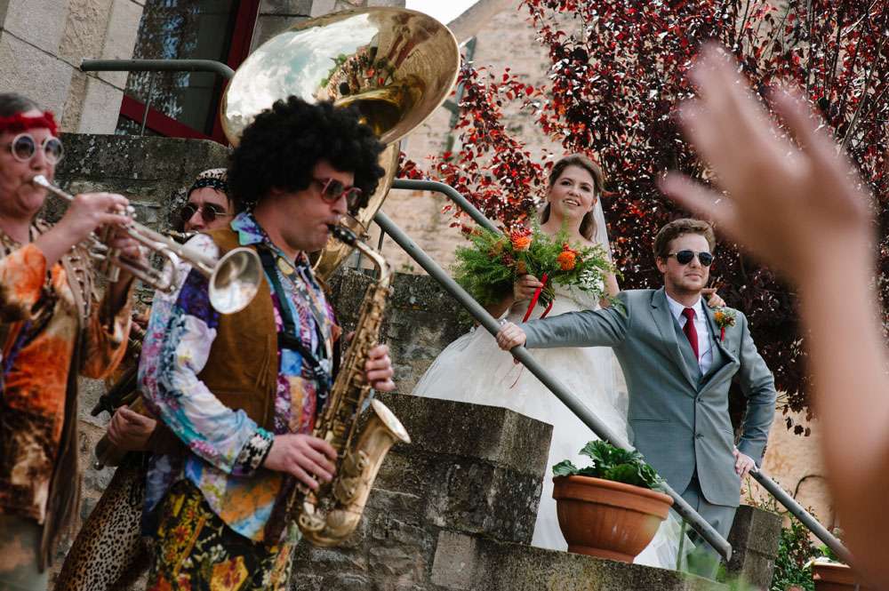 “Our officiant, Levi, was a close friend who has experience celebrating weddings in the US. The text she wrote for the ceremony truly reflected our values and was not at all standardised. After the ceremony, everyone walked up the hill to the nearby village to the beat of the marching band to do the legal ceremony at the town hall. The vision of everyone marching up the hill in the sun to the sound of a marching band was the first image I had of the wedding, and I feel like the rest of the day was constructed around it.”