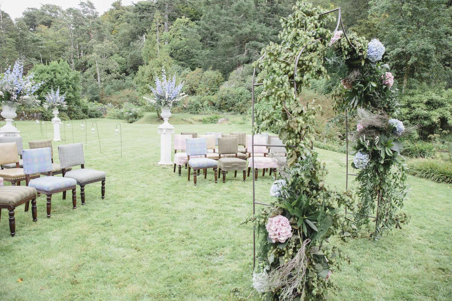 The couple were married outside, in the gardens of Lunga House. “Scotland itself was very inspirational in choosing details for our wedding”, she continued. “Colin is Scottish but has grown up mainly in England. The Scottish landscape inspired our selection of muted pastel colours, we wanted all the flowers to feel very wild and natural. The ceremony was outdoors and we tried to incorporate the natural landscape into our wedding as much as possible.”