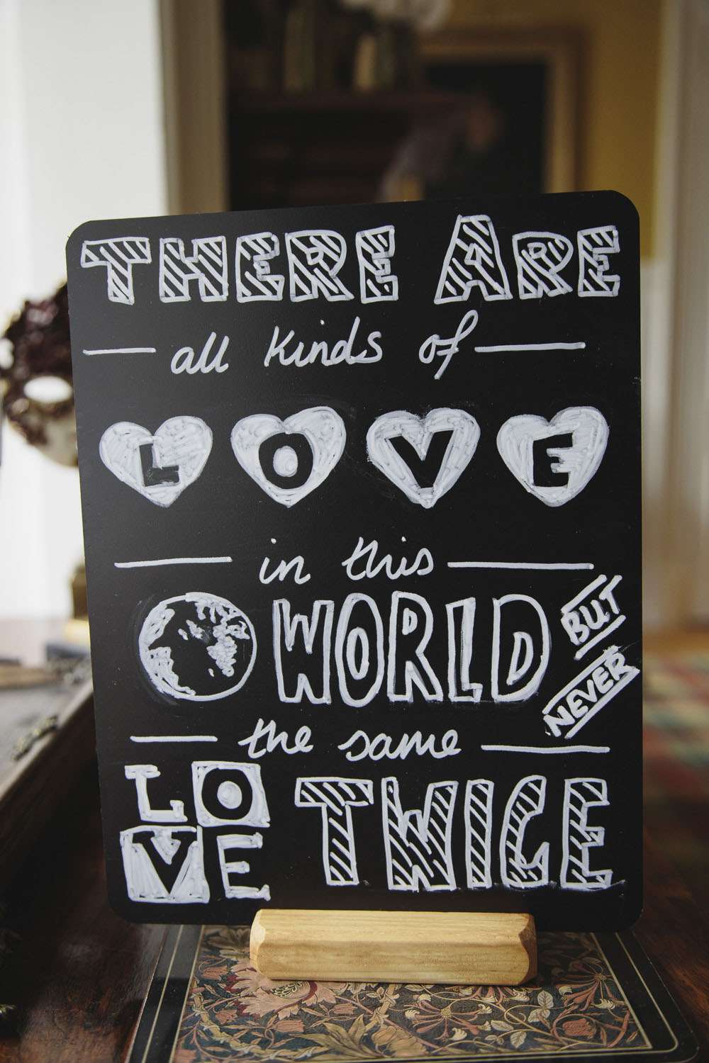 “To be in keeping with the décor of our wedding venue we knew we needed vintage styling, this was further confirmed when I’d bought my Jenny Packham dress which had a real Gatsby-esque 1920s look. There is a quote by Scott F Fitzgerald ‘There are all kinds of love in this world but never the same love twice.’ We used this throughout our wedding: in our ceremony, on our order of service, in some of our décor; we felt these words captured the personal, unique and loving celebration we wanted to create for our wedding day.”