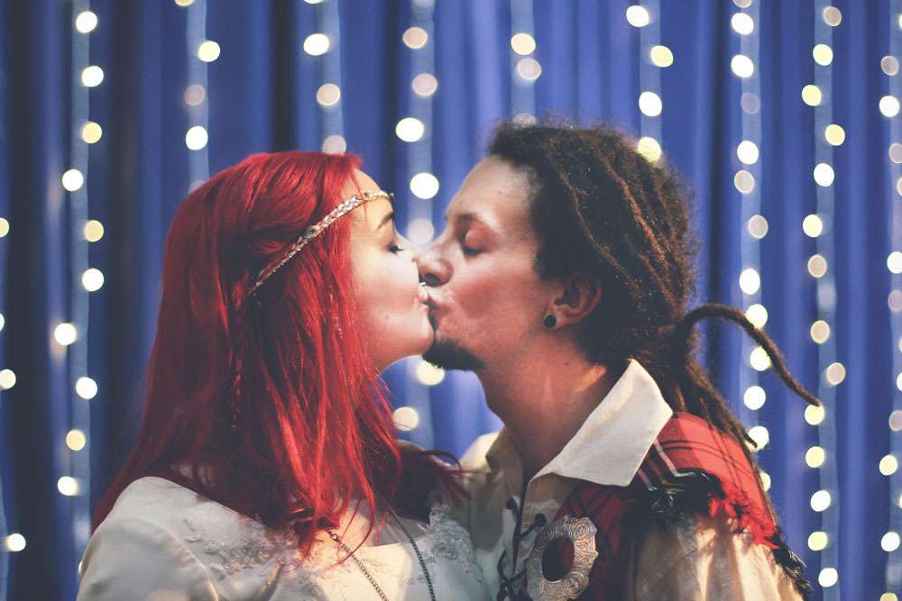 Lauren and JP’s Glasgow wedding was based on their mutual love of Scotland and literature. “Our inspiration was really just stuff we like”, Lauren wrote. “Medieval mixed with Scottish mixed with books mixed with 50s mixed with tattoos mixed with pumpkins! It was lucky that our mish-mash just worked in the space together! There’s nothing like that moment when you see your vision for the day come together so well.”