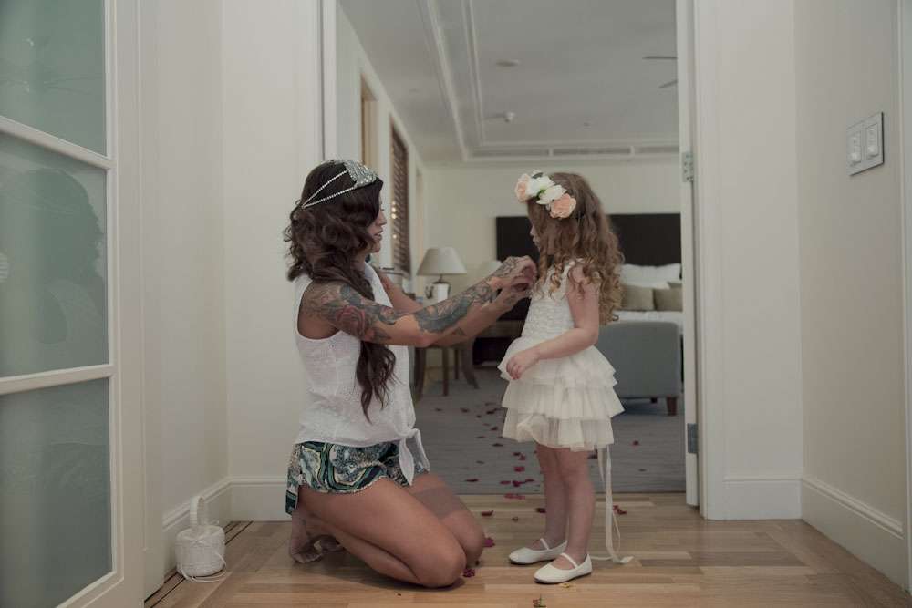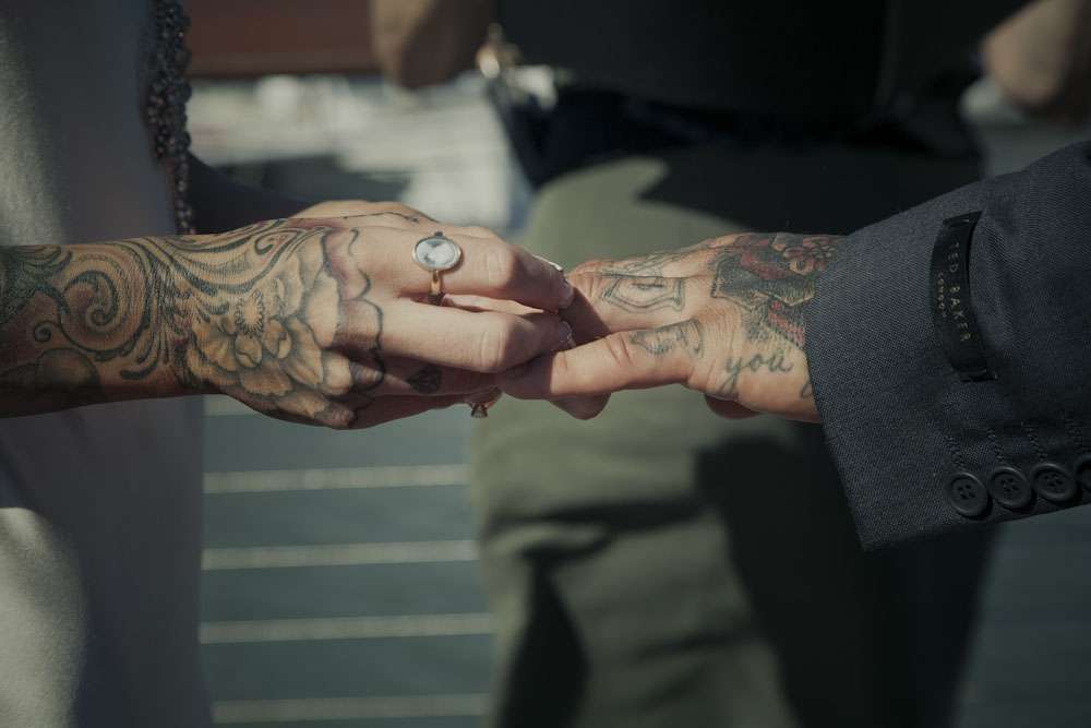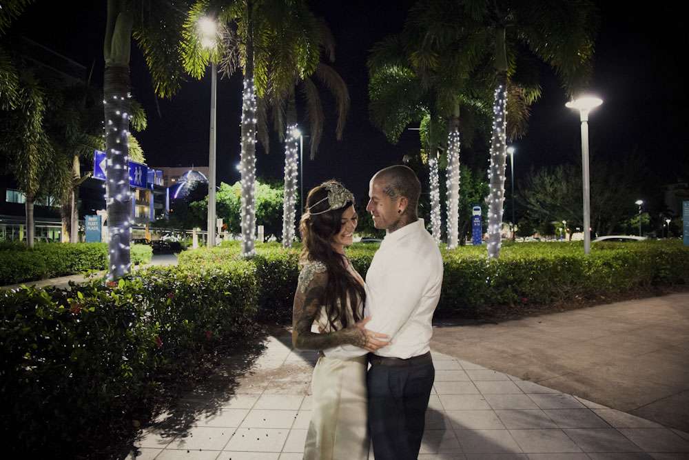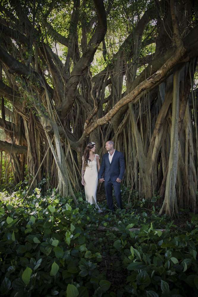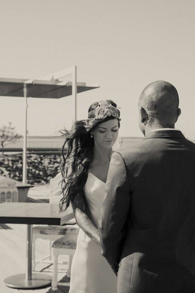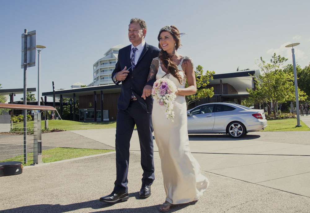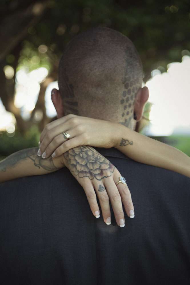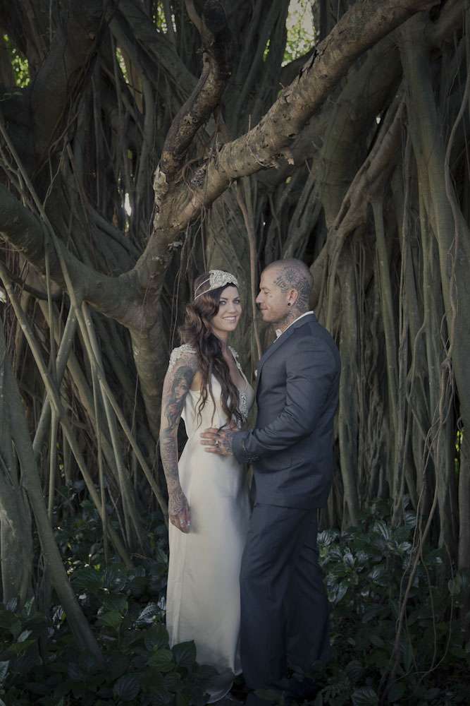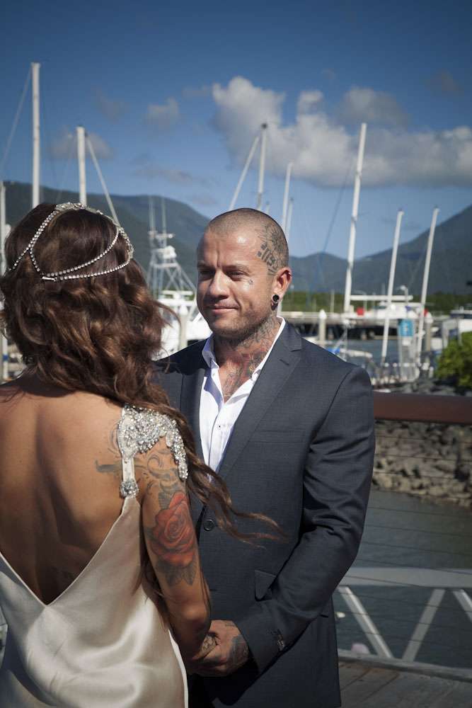 Jamie and Mat’s intimate wedding was held by the marina in Carins, a tropical paradise in the north of Queensland. Their ceremony was right by the water, and their reception was held at Salt House restaurant. “We met while I was working at the Cairns night markets airbrushing hats”, began the bride. “I noticed Mat walk into the markets and prayed he didn’t come to my booth as I was covered in paint… but over he came to order some hats. I stumbled through conversation with him, discovering we were both originally from the small rural town. It was definitely lust at first sight! Two weeks later we went on our first date and we haven’t spent a single night apart since! He proposed after just three months and we were married three months later!”