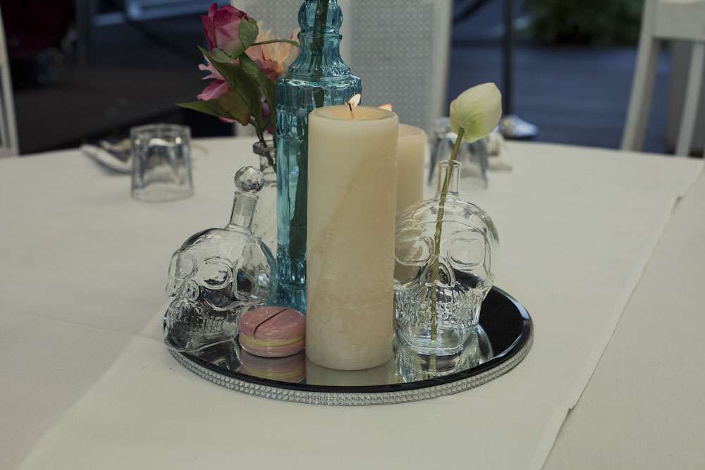 “Our wedding theme vintage but with a touch of modern”, she continued. ” We had vintage chairs and teacups but also with glass skull centrepieces! Our wedding was small, just 30 guests. We haven’t regretted this decision for a second.”