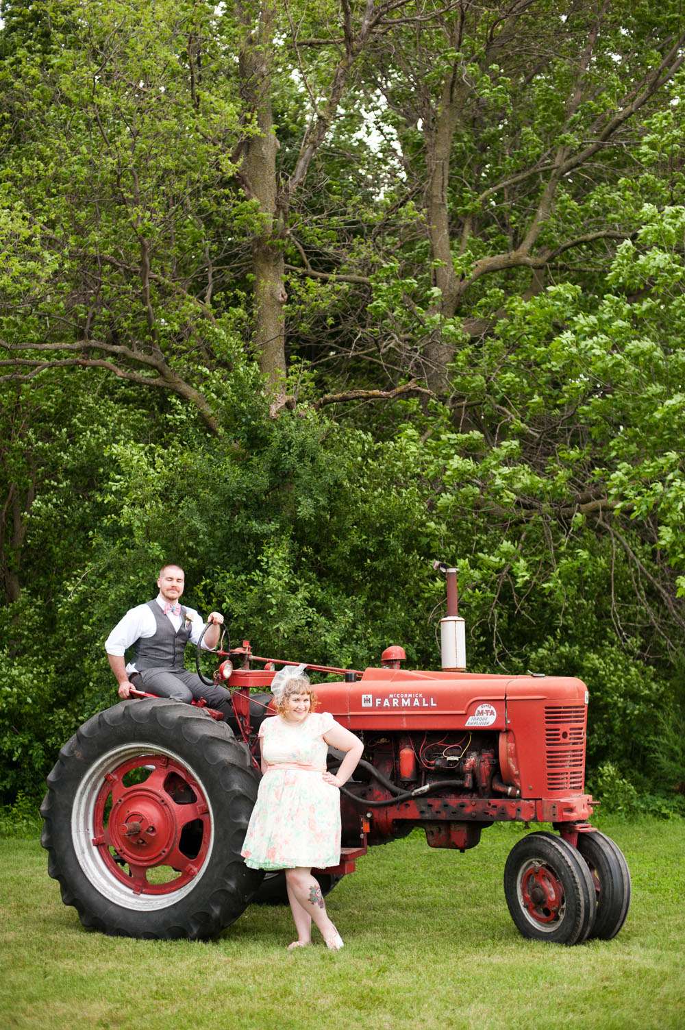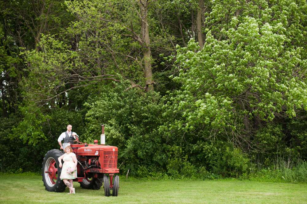 Their reception was held a Thea’s childhood home, a farm in Minnesota. “We spent a lot of time creating and gathering all of the little bits that made our reception look so perfect!” she continued. “All of the paper medallions and tissue paper pom poms were handmade by me, the maneki nekos and other tchotchkes were pieces from around our house. All of the décor was put up by our photographer, videographer (one of the many benefits of hiring your absurdly talented family and friends), maid of honour, and ourselves. We were so lucky to have so much help and so many artistic eyes involved in the process.”