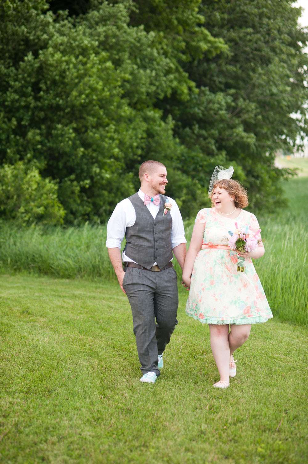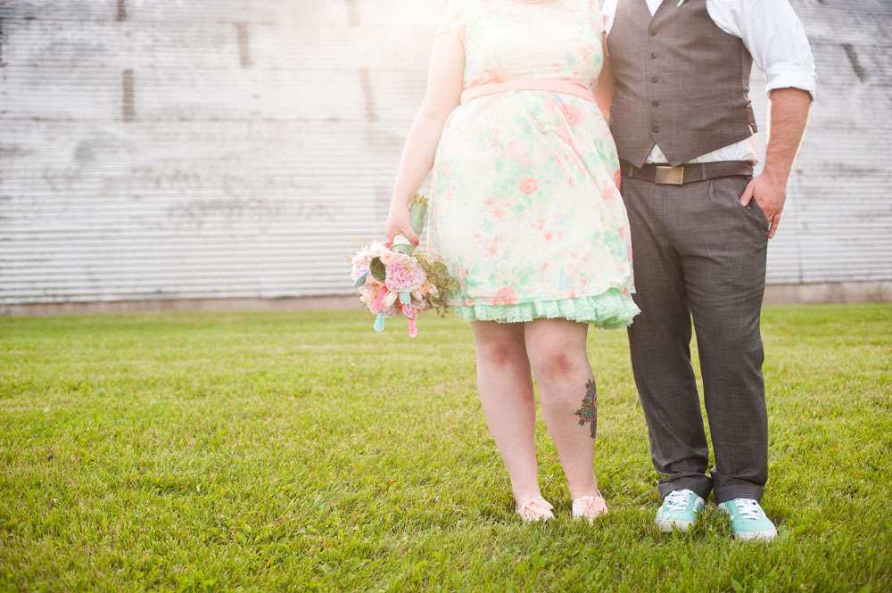 The whole thing was all planned in just two months. “We wanted things to be casual (and cheap)”, she said. “We went with pastels and kitschy vintage details as far as visuals, and based our ceremony around our nerdiness and passion for social justice. It all came together to create the perfect super secret wedding!”