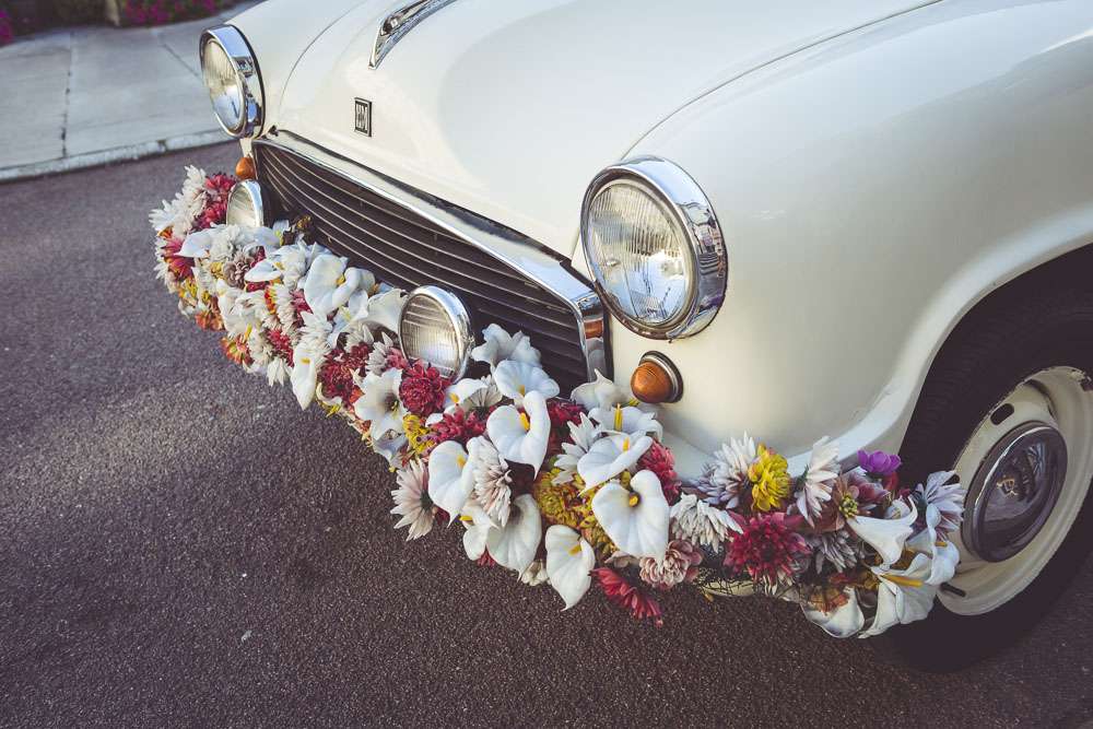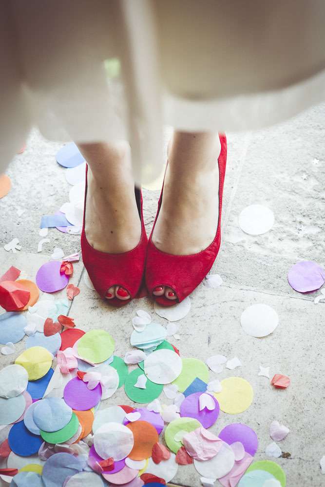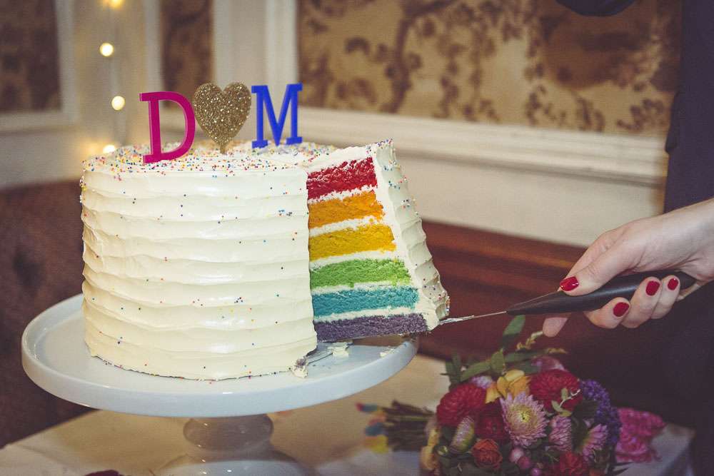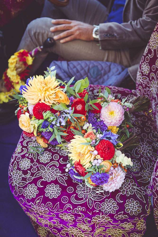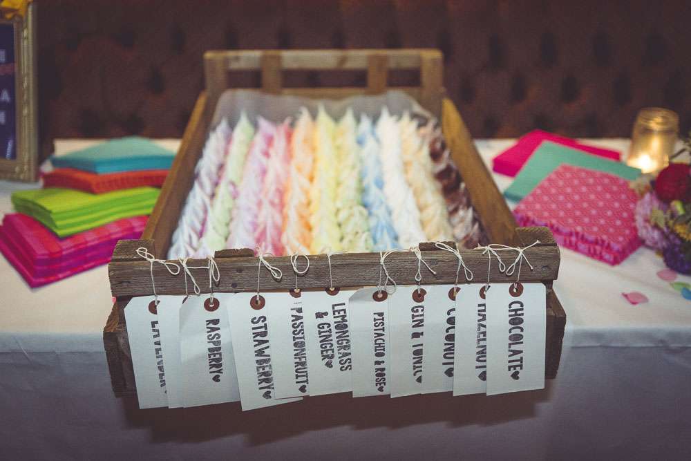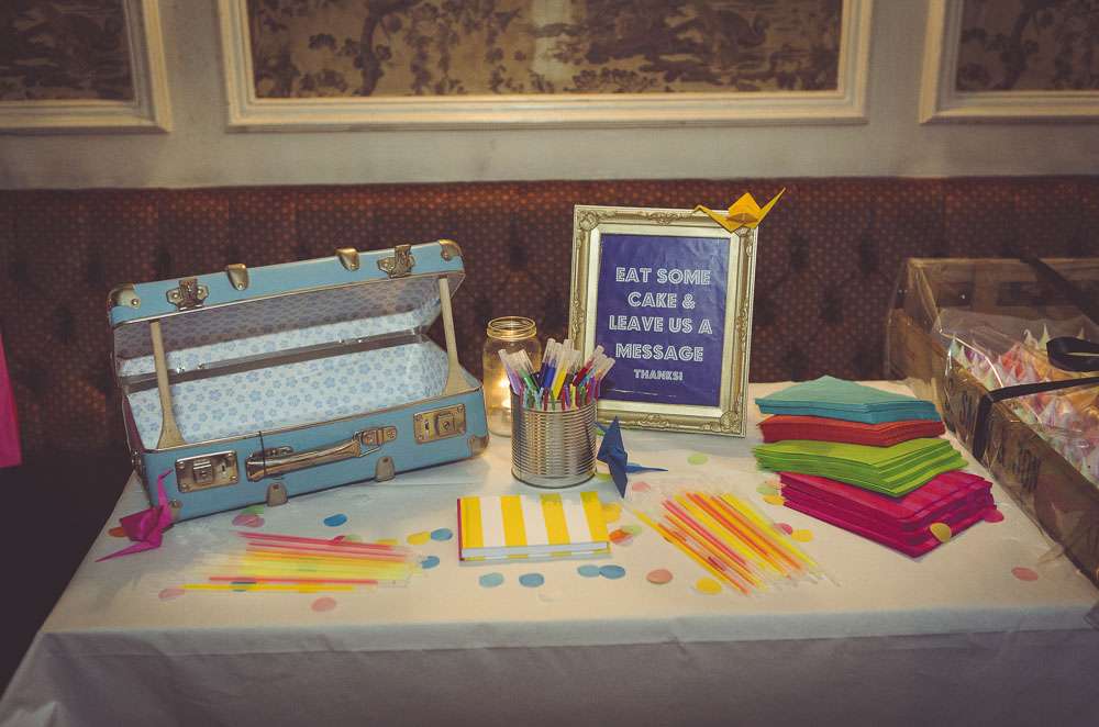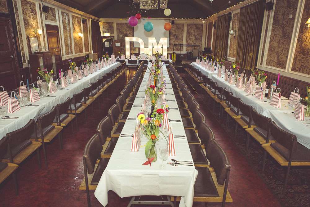 “The idea behind our wedding was that we really just wanted a big party with all our friends. In a way it was easier knowing what we didn’t want (chair covers, fruit cake, pastel colours), which helped us find what we did want – lots of bright colours and for everyone to have a really good (boozy) time!”