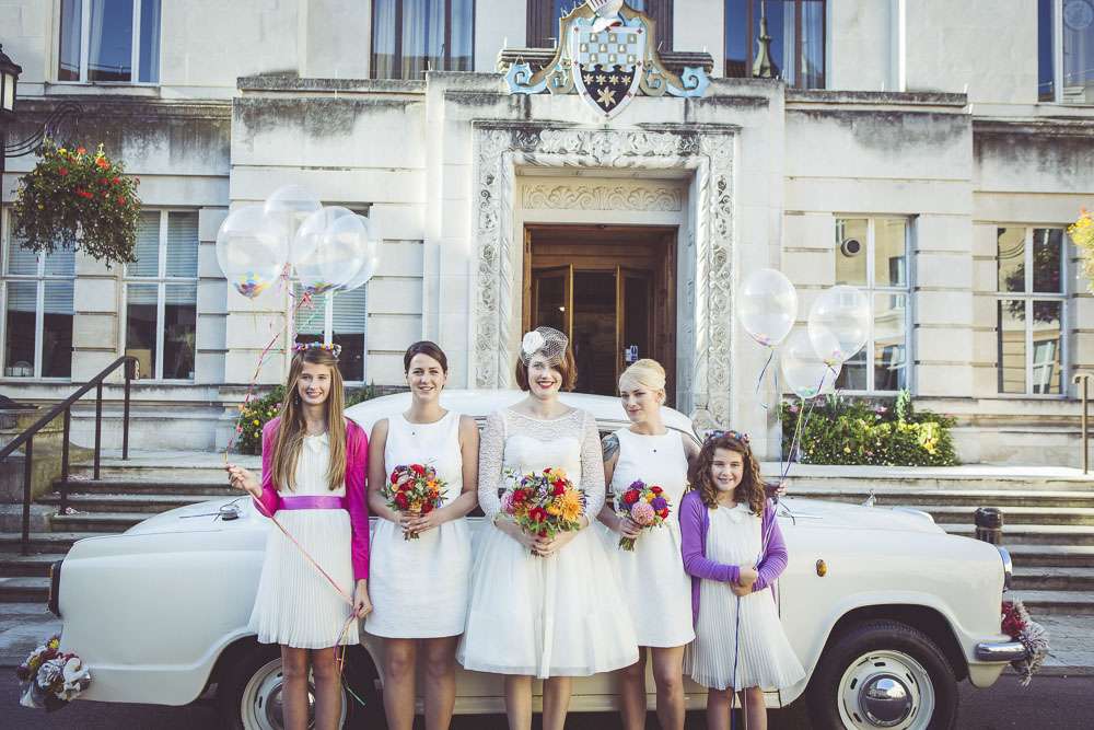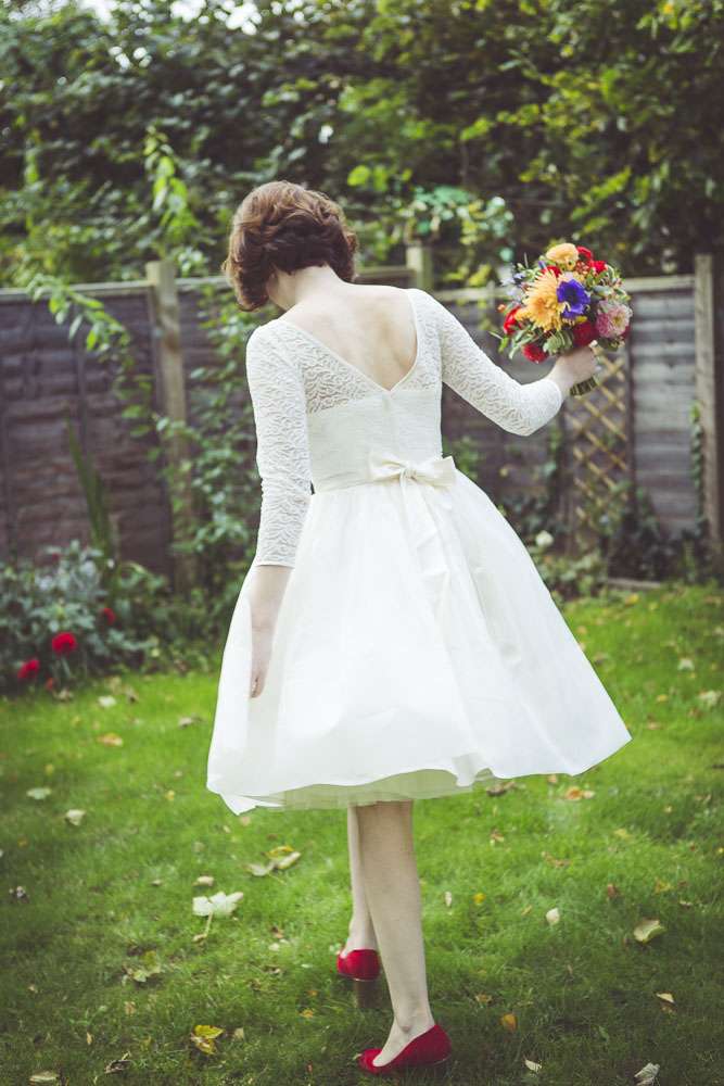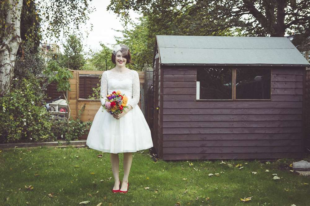 The bride looked stunning in her dress by Fur Coat No Knickers. Her gorgeous retro inspired hair and make up was done by Lipstick and Curls. “Although we tried to save money wherever we could, we splashed out on a couple of things, the first of which was my dress. I really didn’t know what I wanted and had thought that I’d end up with a long gown (although maxi dresses make me look like a sausage), and had tried a few eye-wateringly expensive vintage dresses at a sample sale, but nothing really caught my eye. I had seen Fur Coat No Knickers dresses on wedding blogs and loved the vintage style, but wasn’t planning on choosing anything when I went to my first appointment at 9am on a Saturday morning, on my own. It sounds cheesy but I burst in to tears as soon as I tried it on (might have been a little emotional after the Prosecco the lovely FCNK girls gave me)! The dress was nowhere near as expensive as some I’d seen and it was a million times more beautiful, but whatever way you look at it it’s still a lot of money for one dress. BUT you only do it once. The good thing about it was that the FCNK girls were really up front about the costs for alterations at the start, so I completely knew where I stood – no nasty surprises late in the day. Plus, the whole experience of choosing the dress, the fittings and alterations, was probably my favourite part of the whole experience, I cried at my last fitting!”