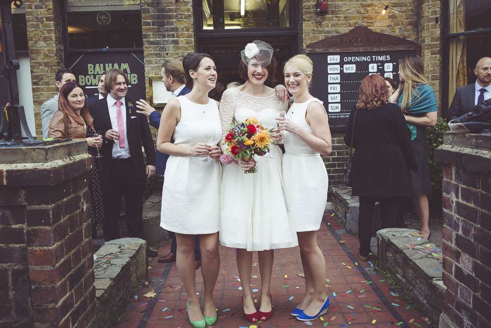 Dani and Mark mat three years ago at Balham Bowls Club in south London. So when it came to choosing a venue for their October wedding, nowhere else could have been more perfect! “The night we met I was quite hungover and was out for a friend’s birthday, Mark was out for some drinks with his friend (and best man) Paul. Depending on who tells the story, I apparently gave Mark ‘the eye’ as he walked into the pub, which prompted him to start talking to me later in the evening, OR (my version) I don’t remember looking at Mark as he came in and wondered why he was staring at me all night. Either way, he bought me a rum and coke and we were inseparable ever since.”