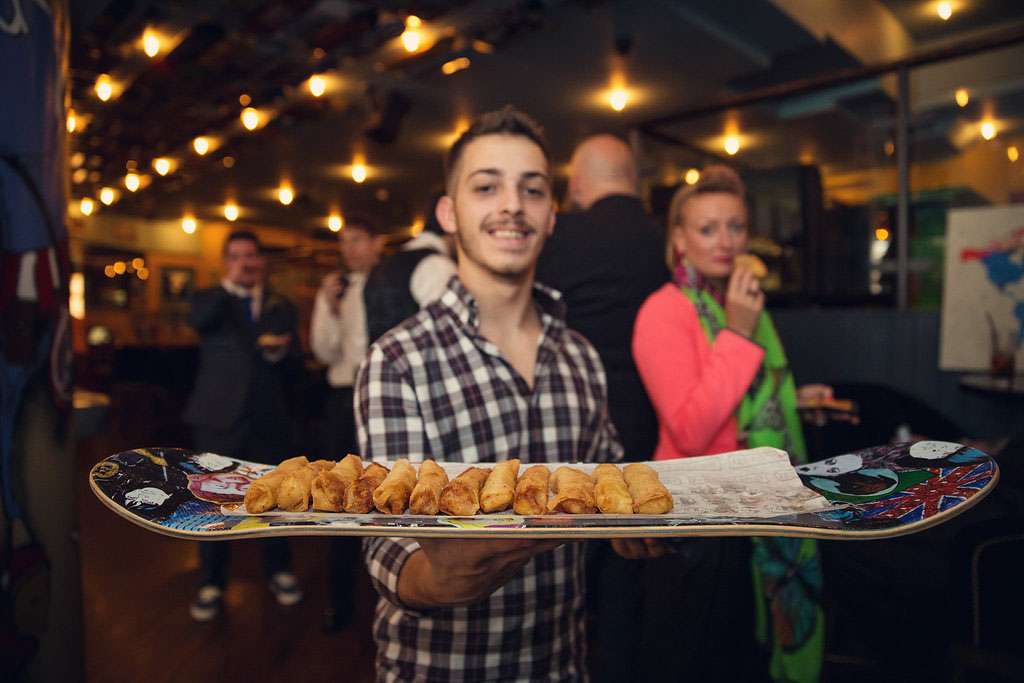 “Far Rockaway’s own amazing kitchen team created American style canapés served on skateboards”, she concluded. “We shared rotisserie chicken, BBQ ribs and pulled beef, and an evening buffet of Mexican food. Drinks on arrival were Camden beer and Pimms and lemonade. Our arrival drinks for the evening reception guests were Piston head beer and tequila shots!”