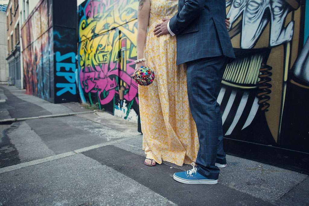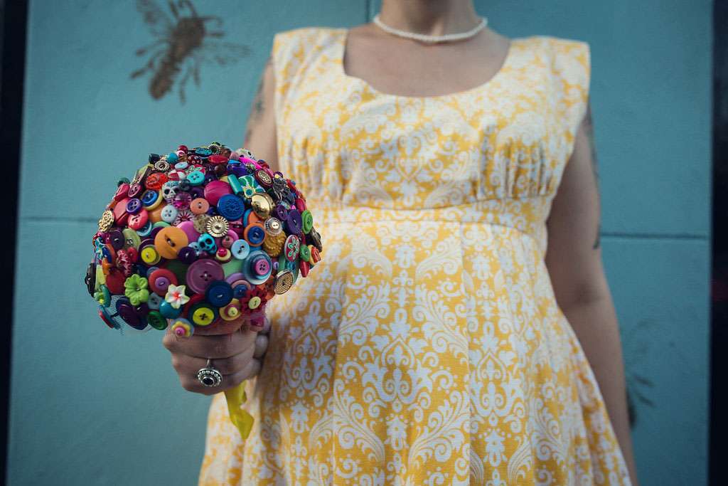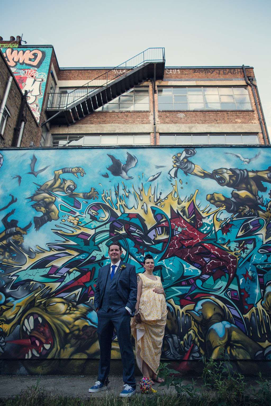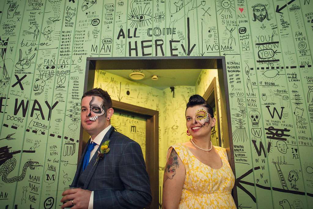 Lindsay and Steve originally planned to elope in Las Vegas, but when the bride fell pregnant those plans had to change! “We had booked our wedding ceremony and flights to Vegas to get married in October 2014, followed by a UK Day of the Dead themed reception a week later”, Lindsay began. “A week after we did this, I found out I was pregnant! Cue cancelling of the Vegas plans and, shotgun wedding in London, and the nicknaming of bump as B.V (Baby Vegas)! We brought our plans forwards to August and, fortunately, all of our other suppliers were super accommodating and we were able to move all our UK plans forward without a hitch.”