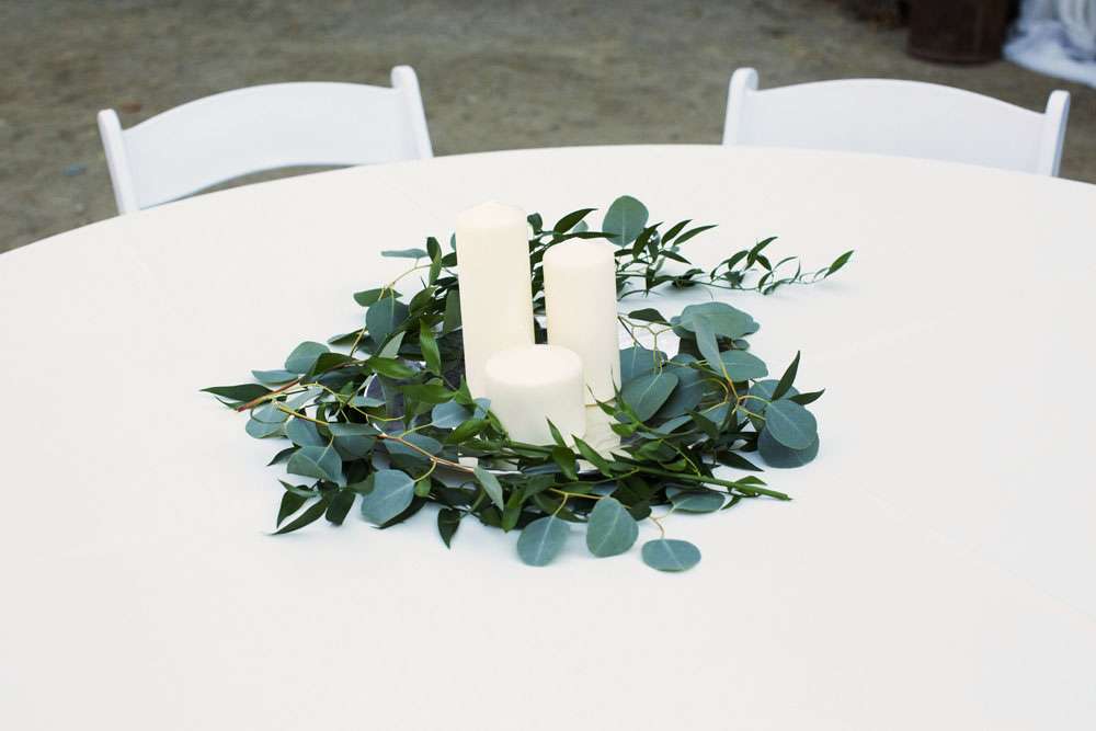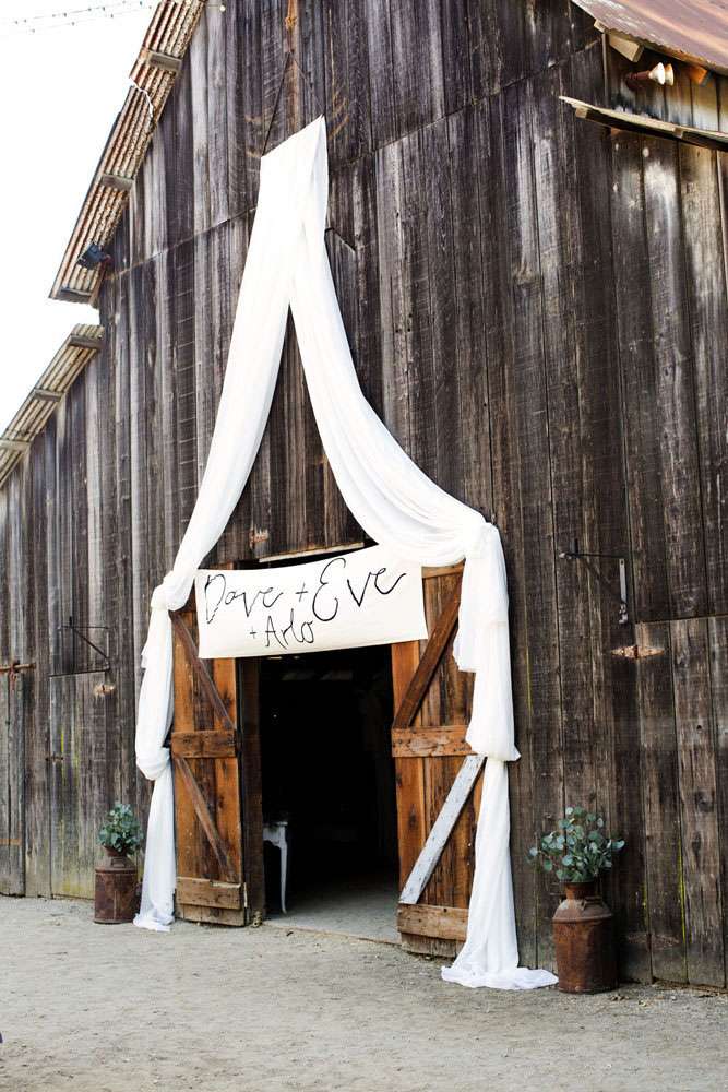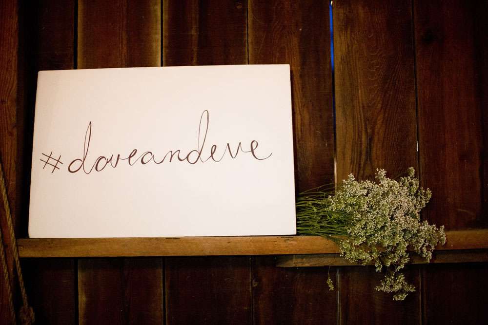 “The venue was the biggest expense of the wedding but being so picturesque meant we didn’t need much in terms of decorations”, she continued. “Our theme was rustic, yet elegant. We really wanted to compliment the nature all around us and so our colors were muted earth tones, and the flowers were all local wild flowers. Our décor was pretty understated. In terms of DIY we made our own seed packet favors and stationery. The garlands on the golf carts were made with fabric and twine. I also hand beaded the top of my dress, made the groomsmen ties and vests, and painted the sign outside of the barn. My mother made the bouquets and boutonnieres.”