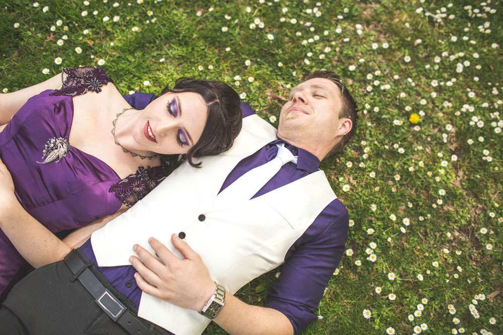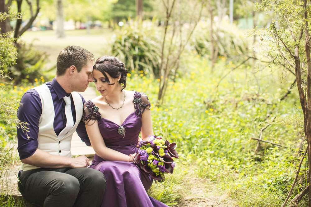 Daniel and Keely had lots of different influences for their October wedding. From the bride’s love of jewel tones – reflected in her dress and make up and the bridesmaid outfits, to their mutual love of travel. They even had art deco references in their stationery. It sounds like it shouldn’t work, but it totally does because it was a real reflection of them.