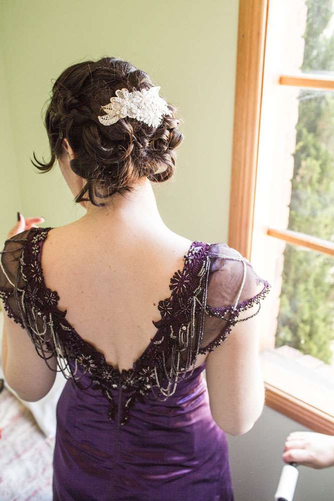 This wedding was actually full of DIY. Everything from the cake to the flowers and reception décor were homemade. “As much as I possibly could was DIYed” she said. “My wedding dress was handmade by my grandmother and I hand-dyed some old lace to match and then hand beaded the dress myself. It took ages, there are a lot of beads on the back of that dress! But it made the dress so much more special when I finally got to wear it. I also beaded and made my hairpiece. My mum made the two bridesmaids dresses and I made the cravats for my bridesmen.”