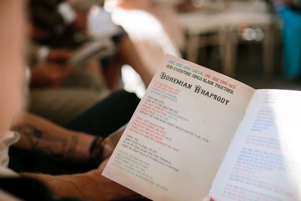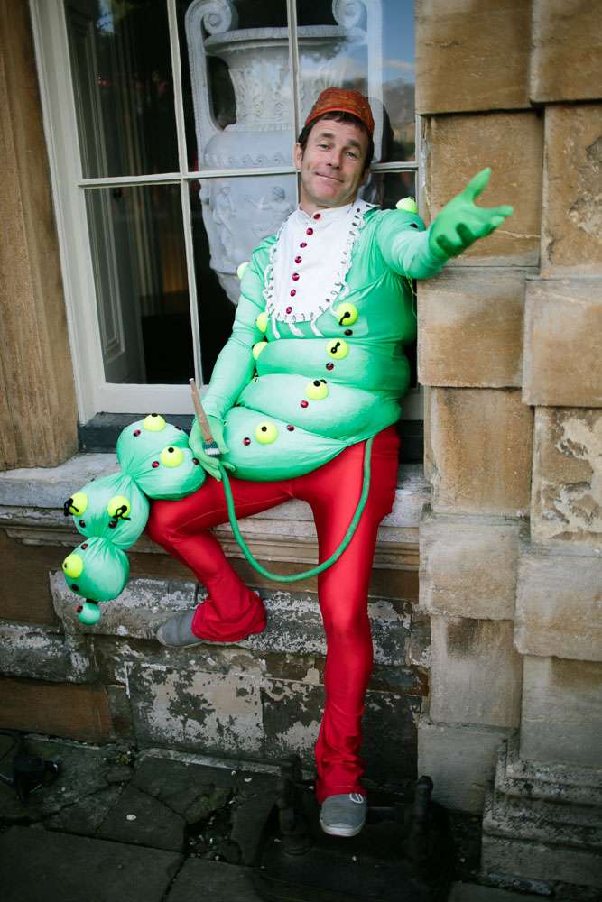 “We had a Druidic ceremony and were married by Hamish dressed as the white rabbit. This was the best bit of the day for me. We had Take That Never Forget and Bohemian Rhapsody as our hymns. We split the room into two sides and made them battle out the verses. The ceremony was gatecrashed by drag queens and the ring bearers where midgets.”