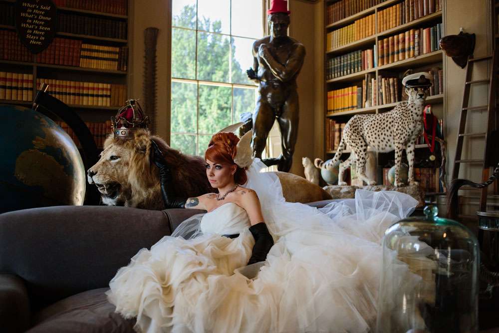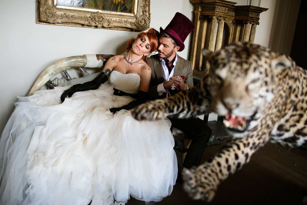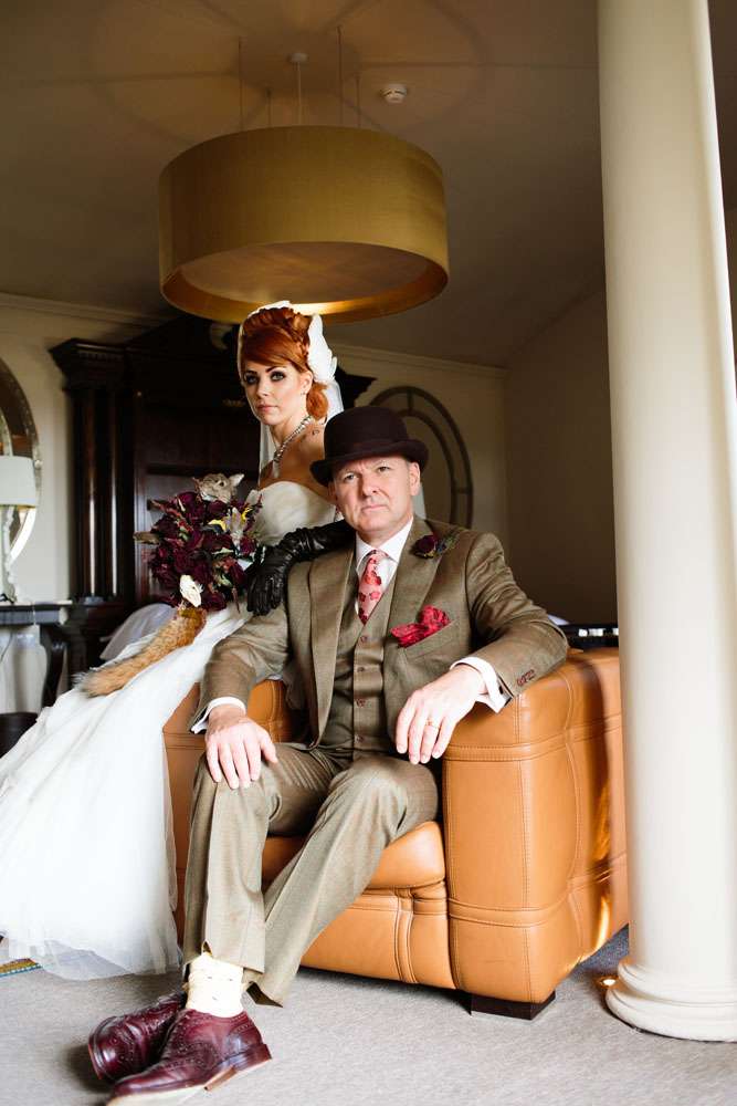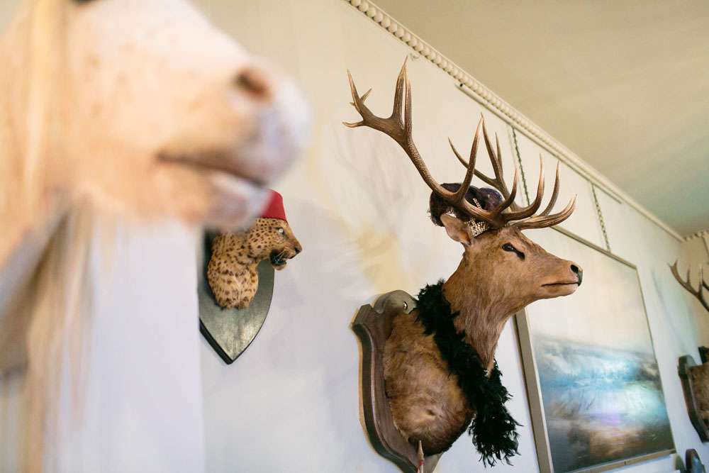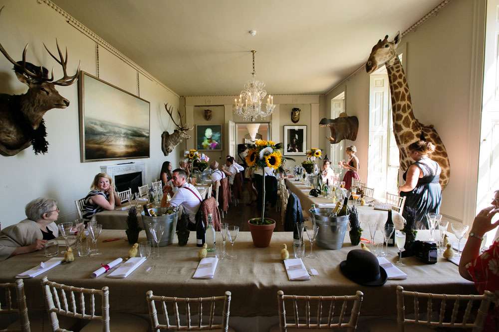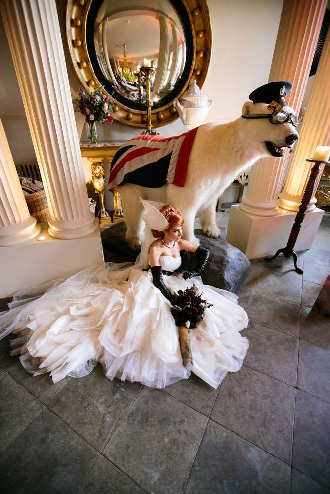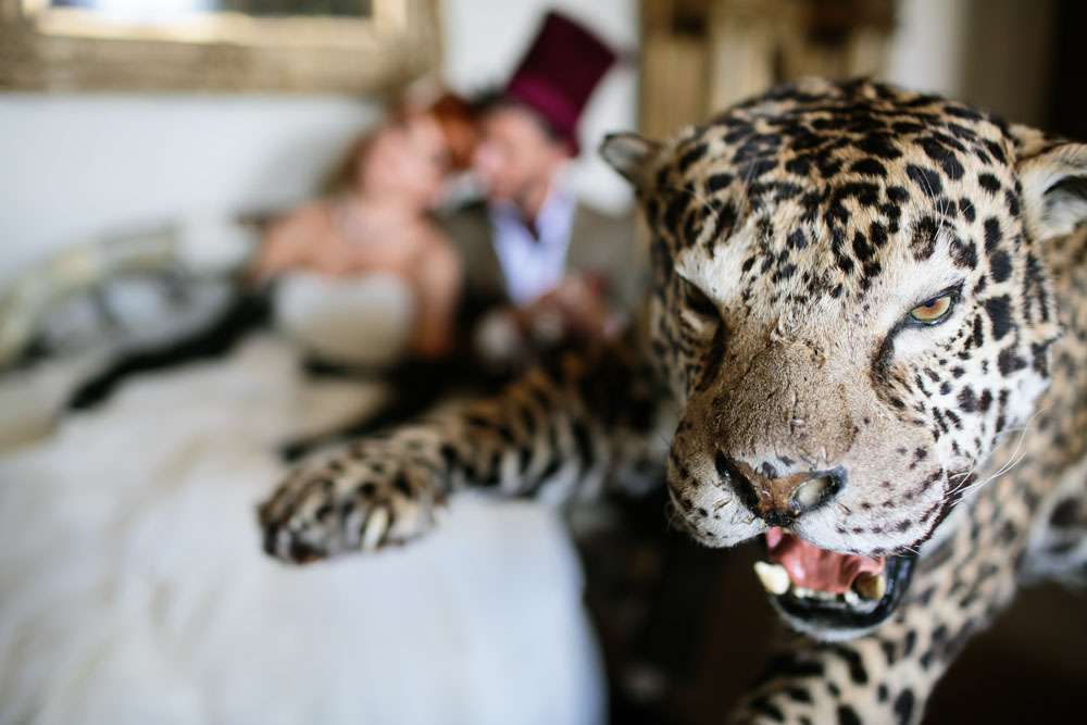 Their venue, Aynhoe Park, has lots of amazing taxidermy everywhere (including a full sized giraffe and a unicorn! So on the tables, they also had some taxidermy provided by Death and Glory. “I found Death and Glory through Facebook and I contacted them about a vast array of taxidermy we wanted for the wedding. Even though Aynhoe was already draped in taxidermy, it was ‘our thing’ too so we had to have our own.”