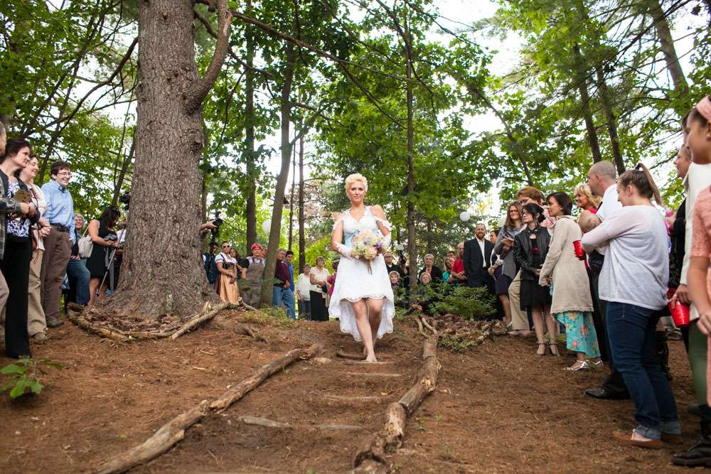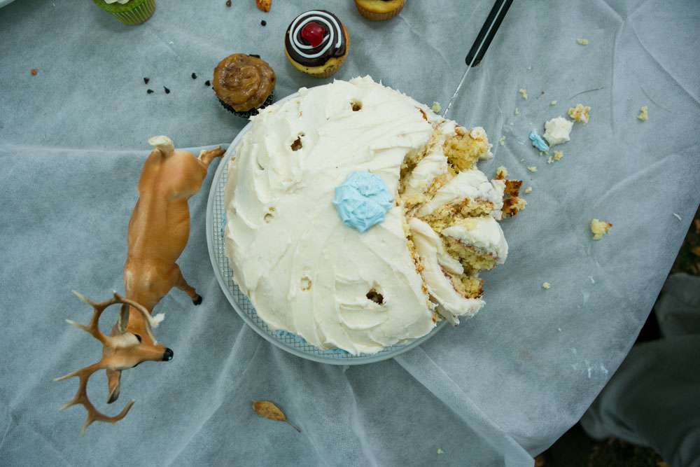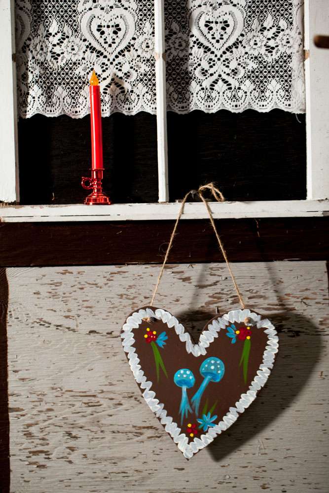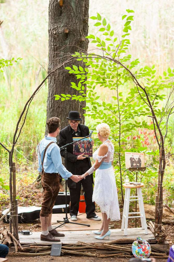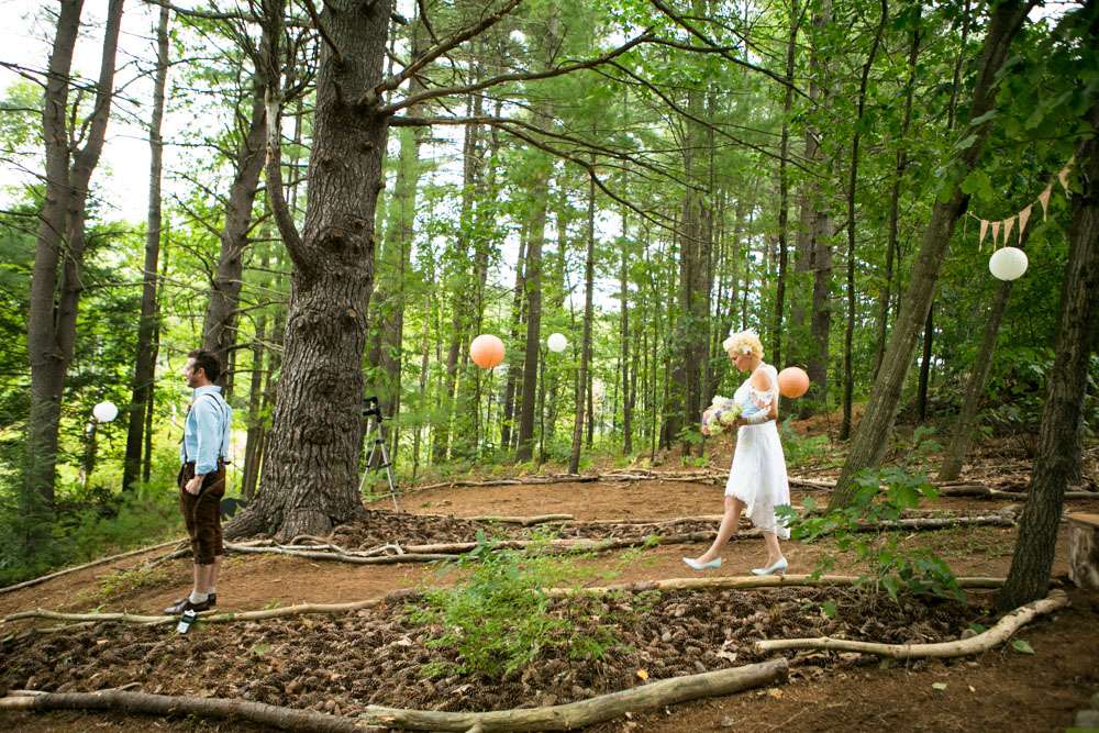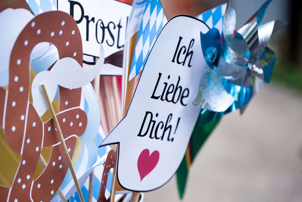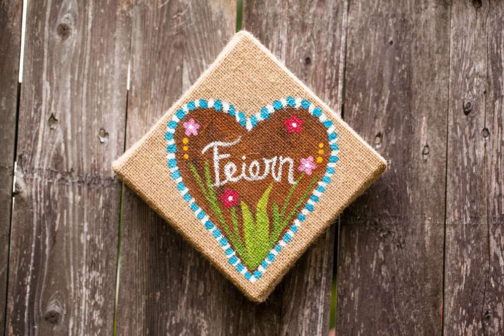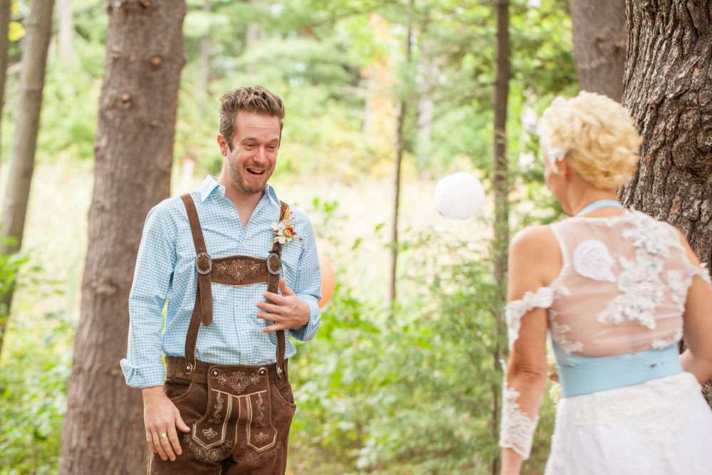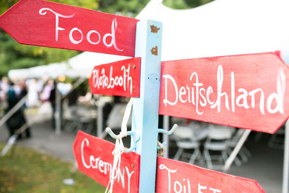 “Pretty much everything was DIY!” Emily said. “We had so much help from my mom and other close family and friends. For decorations we had handmade forest animal silhouettes, painted wooden lebkuchen hearts, tiny painted toadstools, biergarten sign, two bars, and our shed transformed into German candy haus!”