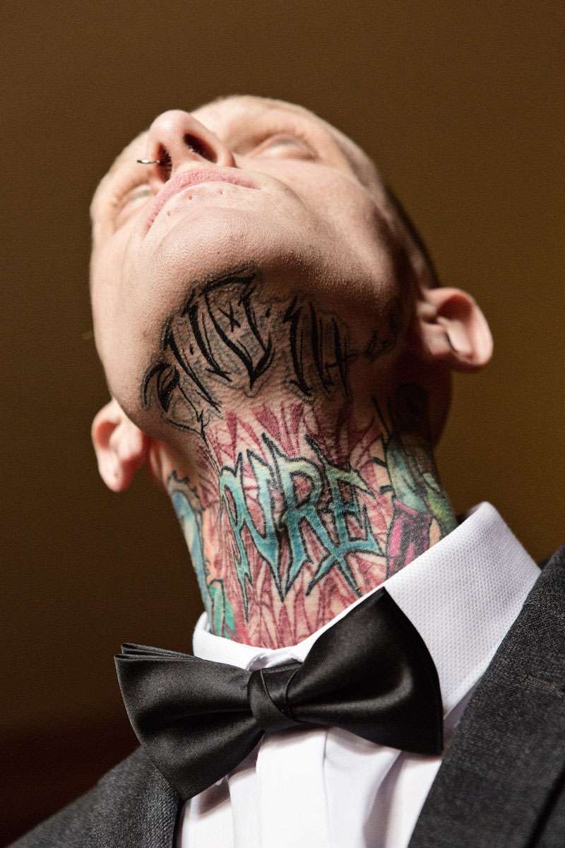The couple did a lot themselves including making the invites and decorating the table, which all the guests sat around for dinner. “After contacting four different wedding invitation designers who were not able to create the kind of invites we wanted, we decided to do it ourselves. As we only had 10 invites to create we felt that this would be a realistic task. We locally sourced the padded boxes and materials which we then made by hand into 10 unique invitation boxes. The invitation boxes included a bat illustration on the inside, a Ouija board invite booklet which opened up to show a poem we wrote, and a bunch of vintage black and white wedding photos of brides and grooms which were found during numerous trips to local thrift stores in Brighton. Each invite box had their own unique photos to make their boxes one of a kind. There was also a personalised invite for each guest and their partner and personalised Tarot ‘Lovers’ card depicting two skeletons kissing for an RSVP reminder. Everything was sealed with silk ribbons and a wax seal with a thistle stamp.”