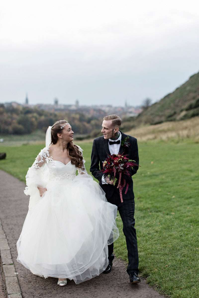 Lisa and Jim were married at Prestonfield House in Edinburgh on Halloween. They planned the wedding in just five months, had just 18 guests and did a lot of the key elements themselves.