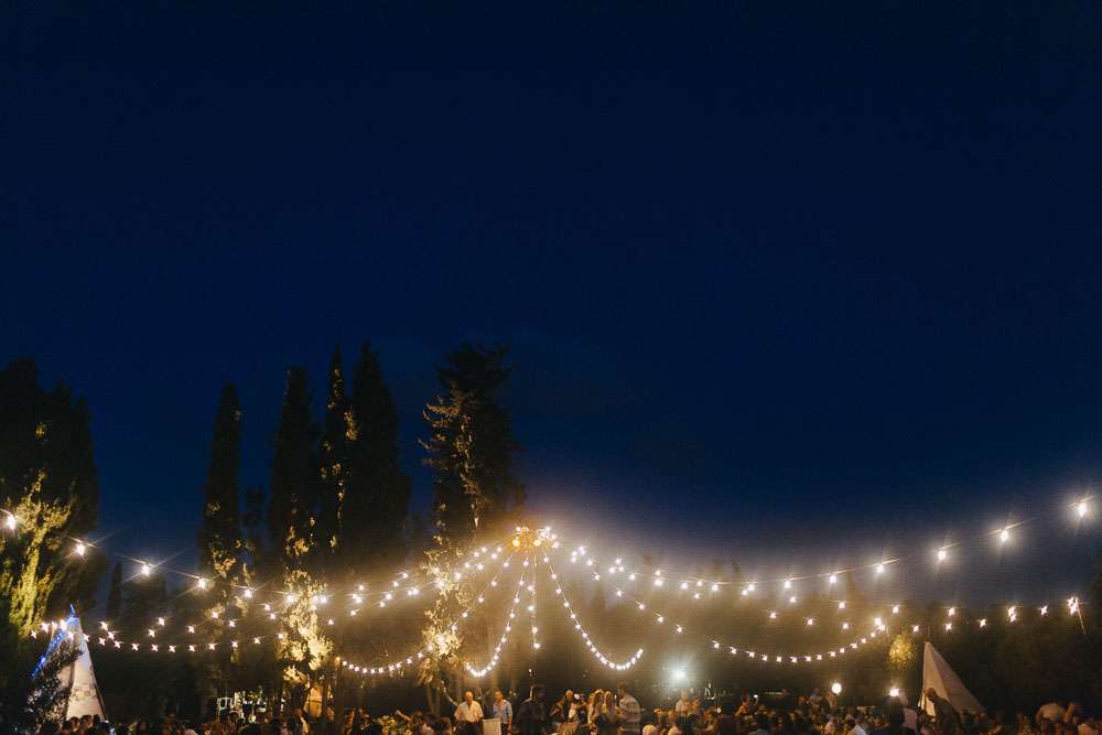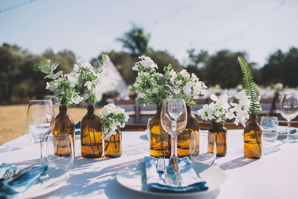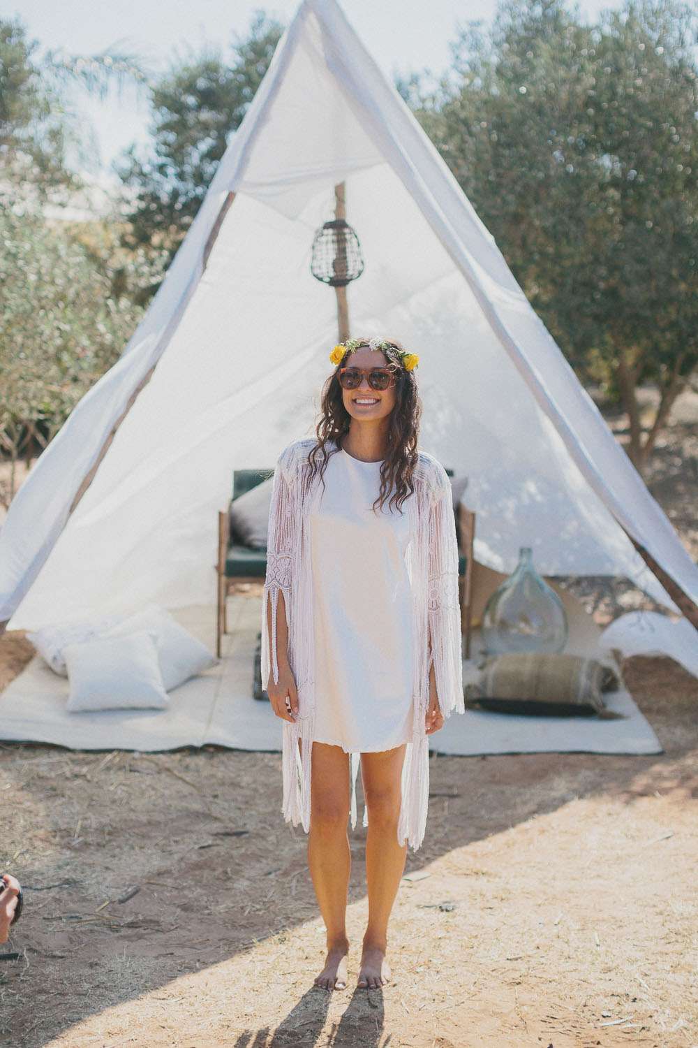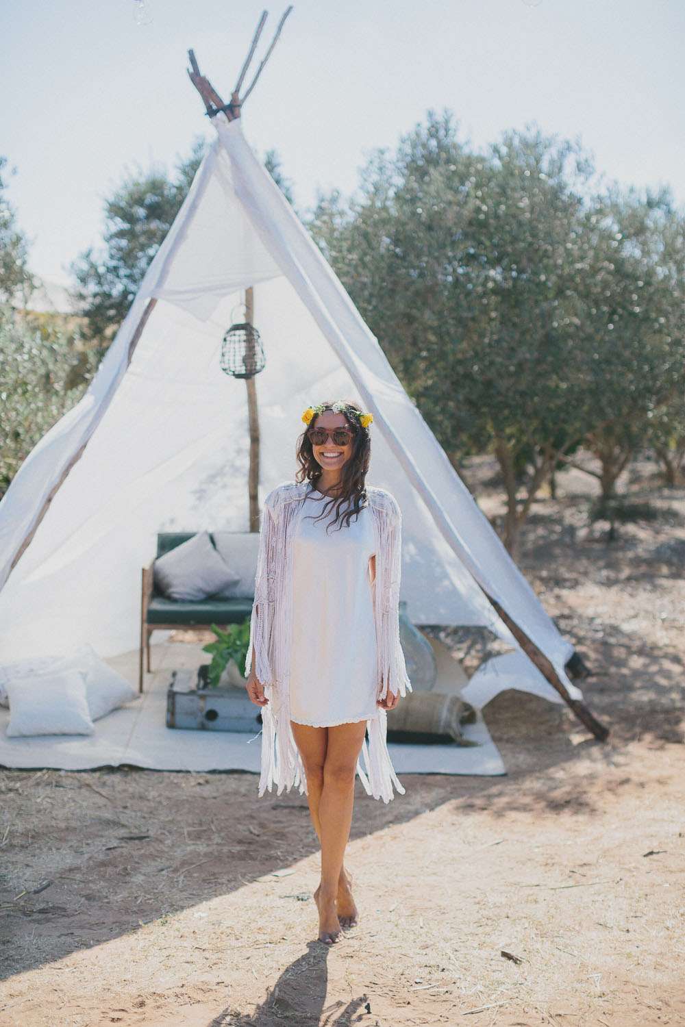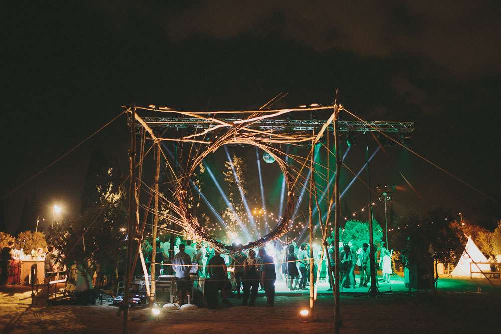 “We’ve been to Burning Man, we’ve been to Love Festival… we love festivals!”, Emma continued. “So we wanted our wedding to reflect that too. The overall styling looked like a desert resort plopped in an olive grove, with tipis strewn across the entire space.”