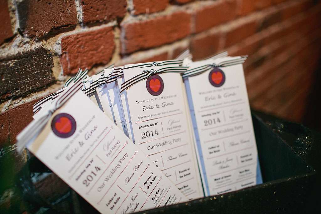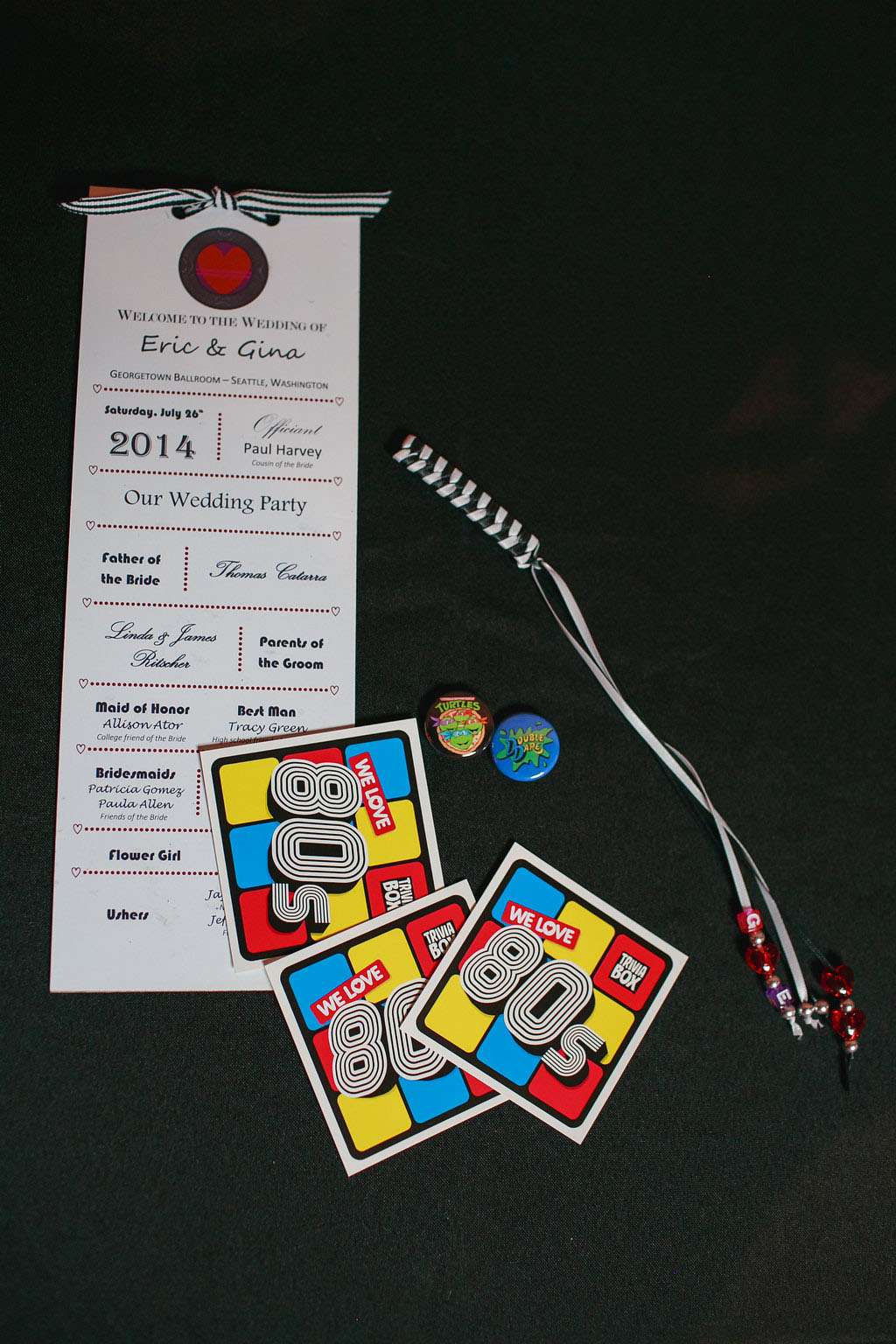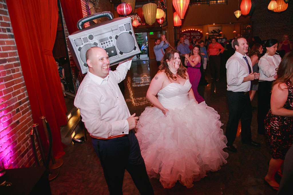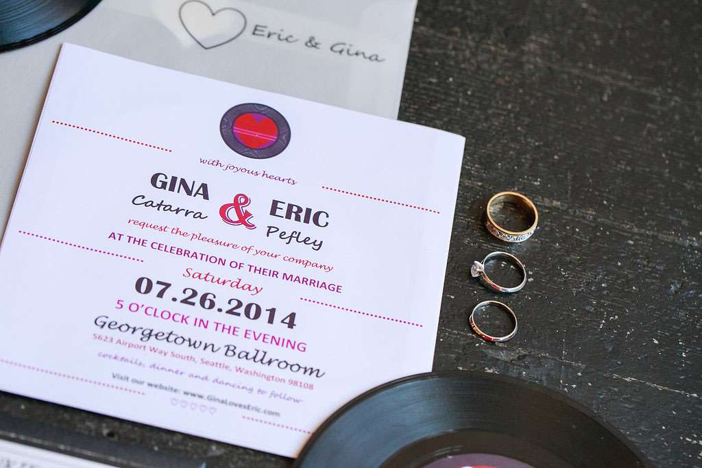 The inspiration for Eric and Gina’s wedding came from their mutual love of music and the 1980s in particular. “When we first sat down and started to plan it, the one thing we knew we wanted for sure was live music during the reception” began the bride. “Our first choice was Rewind, an ‘80s cover band from Seattle. We both wanted a fun, engaging celebration with friends and family. That led us to choose the ‘80s rock theme, which felt so right the minute Eric suggested it. I mean, who doesn’t LOVE the ‘80s?!”