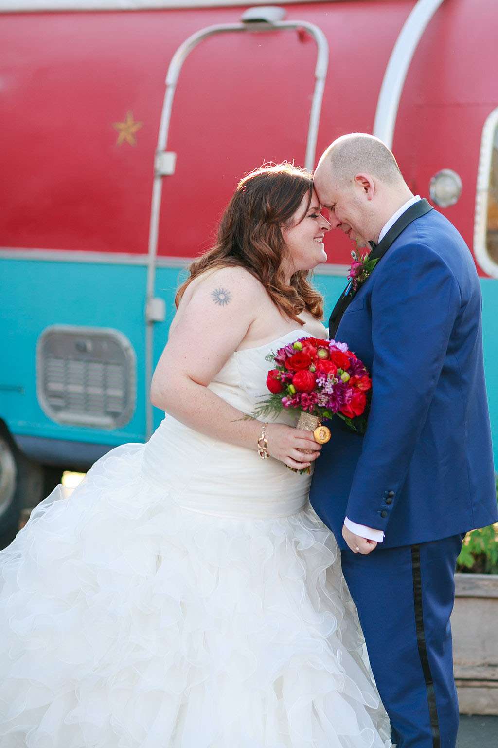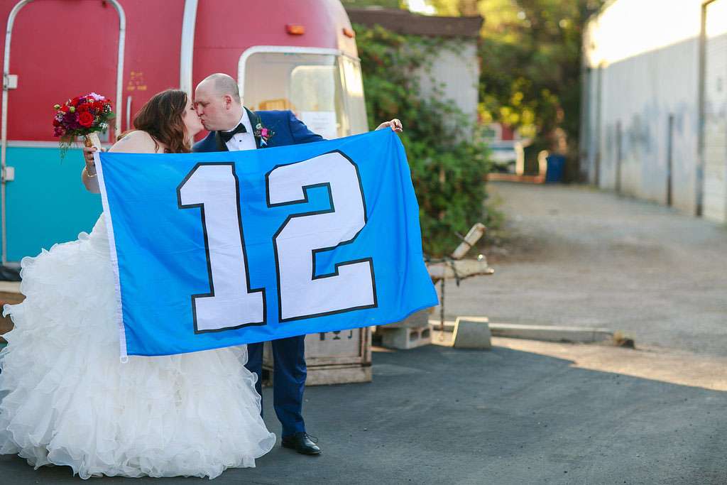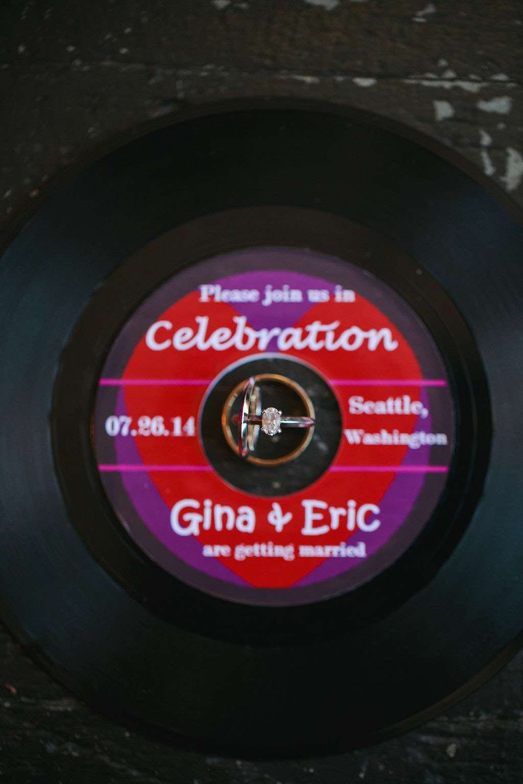 The inspiration for Eric and Gina’s wedding came from their mutual love of music and the 1980s in particular. “When we first sat down and started to plan it, the one thing we knew we wanted for sure was live music during the reception” began the bride. “Our first choice was Rewind, an ‘80s cover band from Seattle. We both wanted a fun, engaging celebration with friends and family. That led us to choose the ‘80s rock theme, which felt so right the minute Eric suggested it. I mean, who doesn’t LOVE the ‘80s?!”