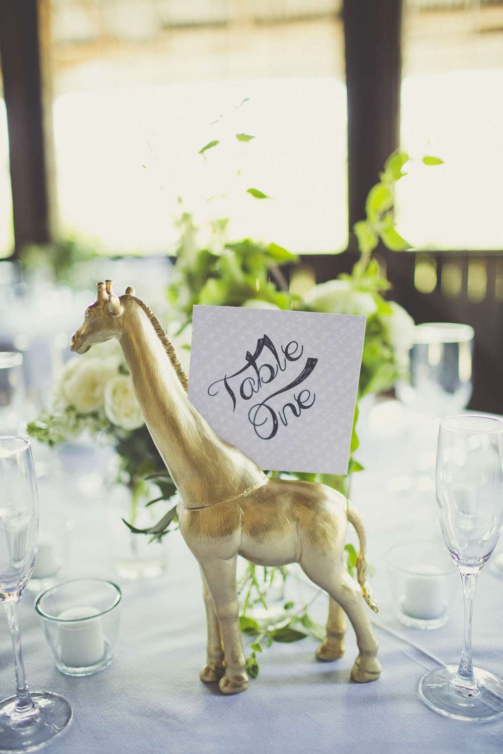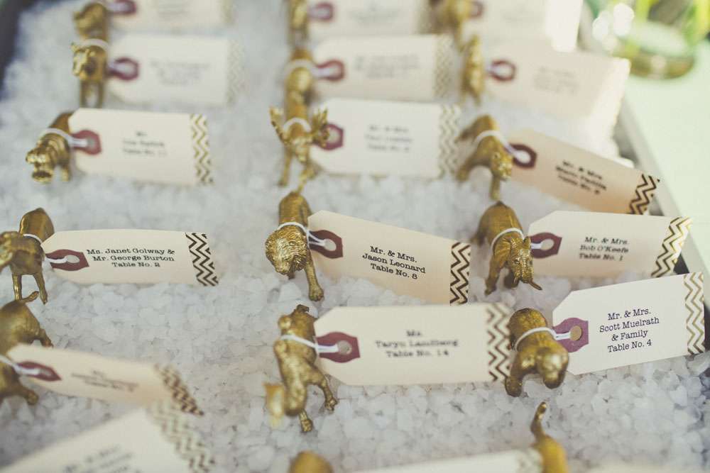 Lauren and Cory’s whimsical French circus wedding theme came from the bride’s imagination. She wanted their wedding to be quirky and fun, yet timeless and elegant. “I wanted to keep everything as organic and simple as possible but with a slight nod to the oh-so-quirky”, Lauren explained. “I used gold animals that I DIY’d for the escort cards and table number holders which added a bit of whimsy and playfulness to the whole aesthetic. Our theme was Whimsical French Safari!”
